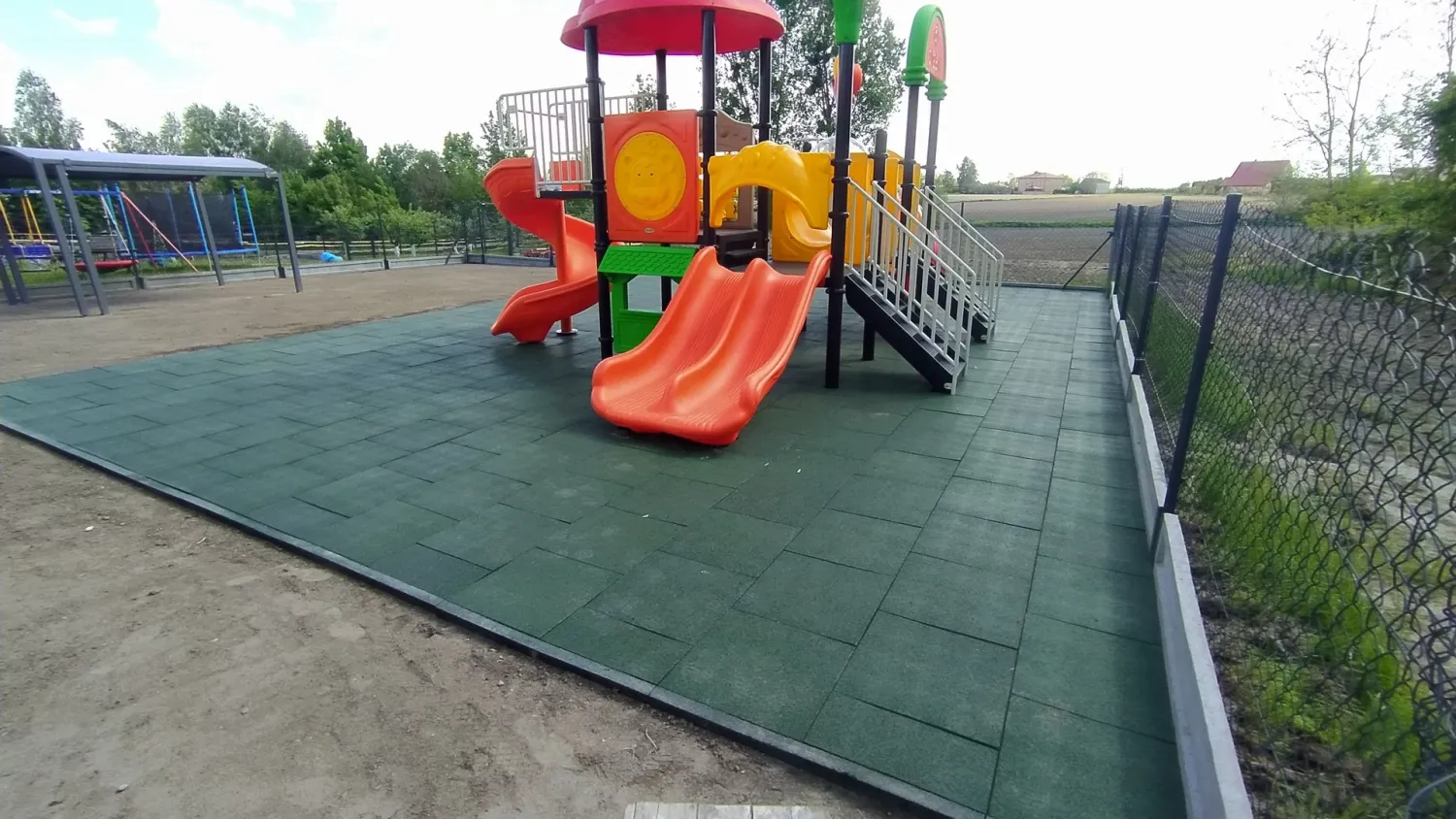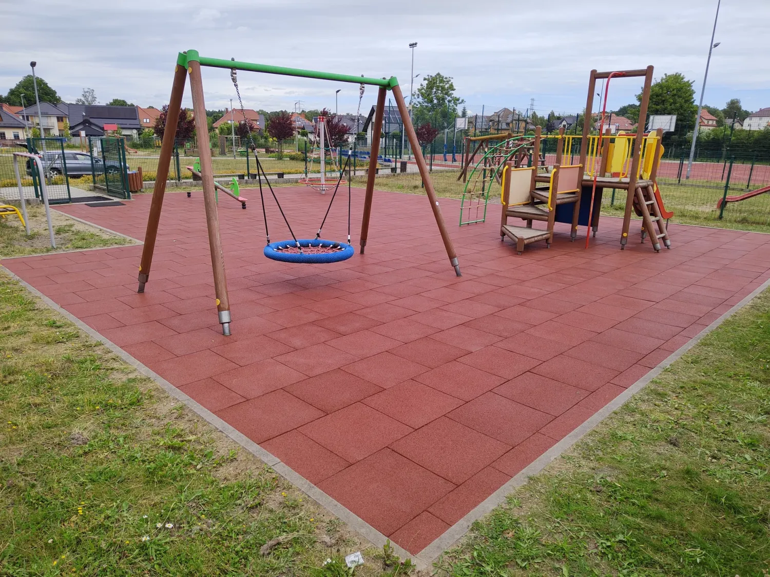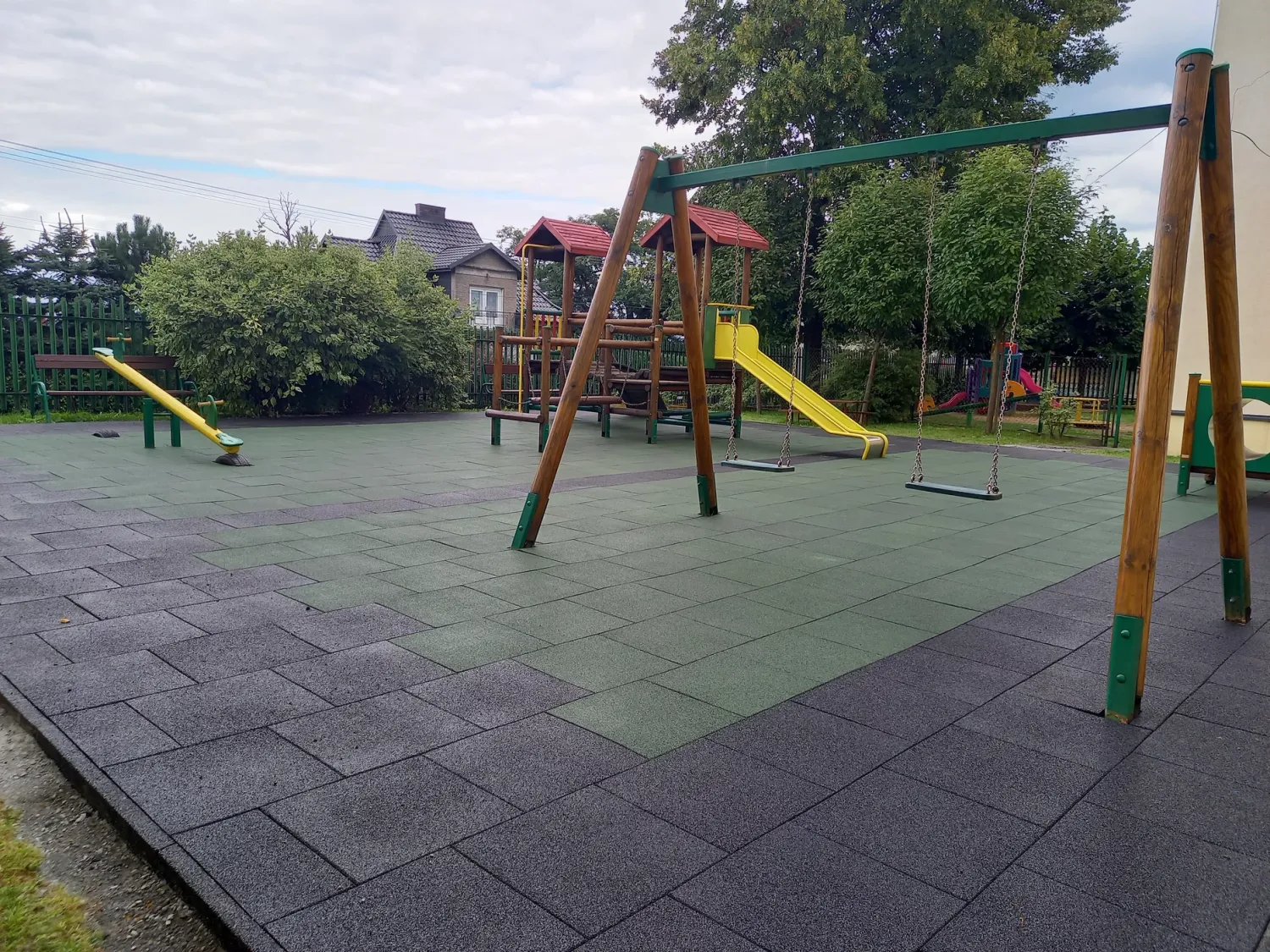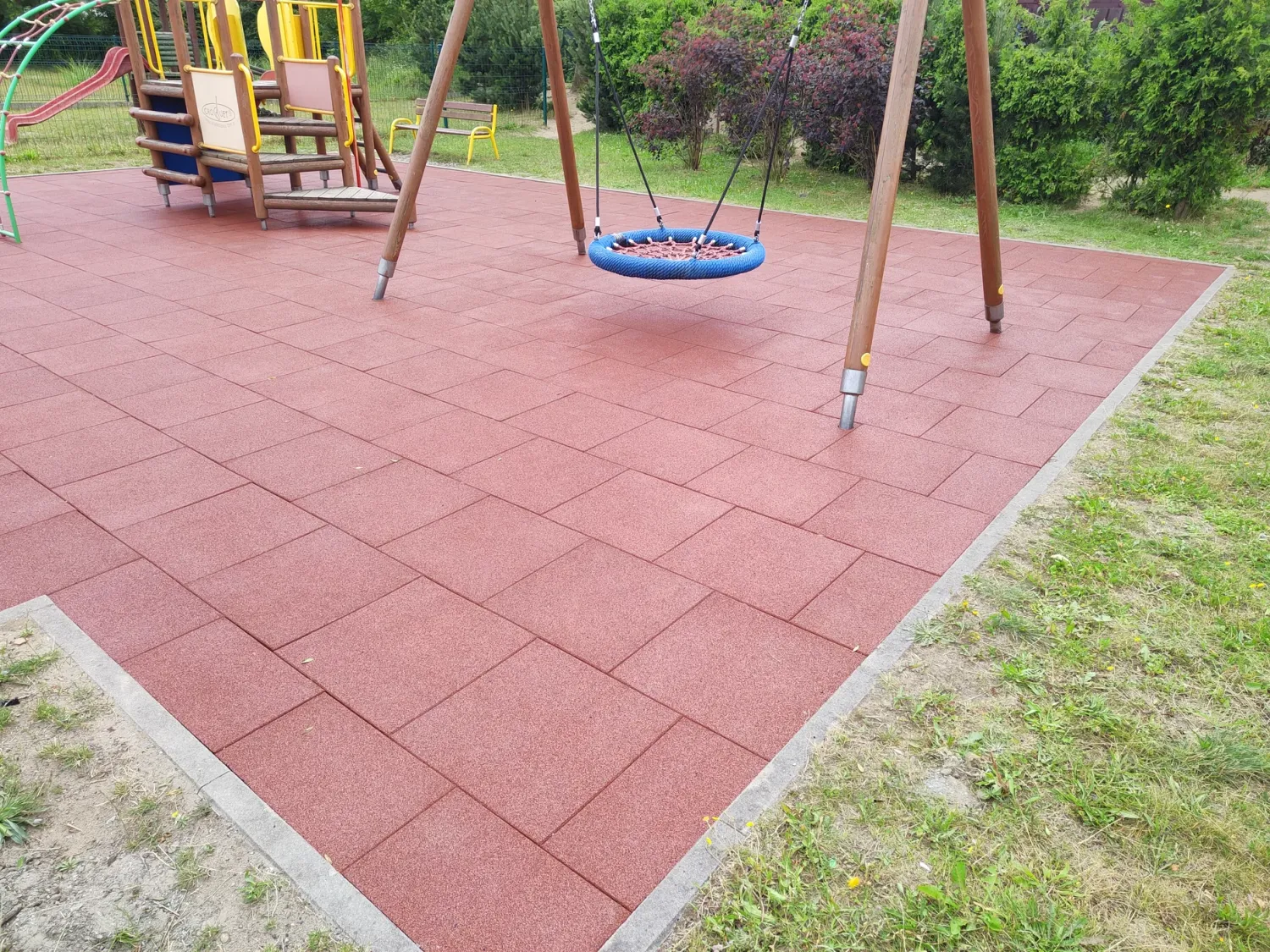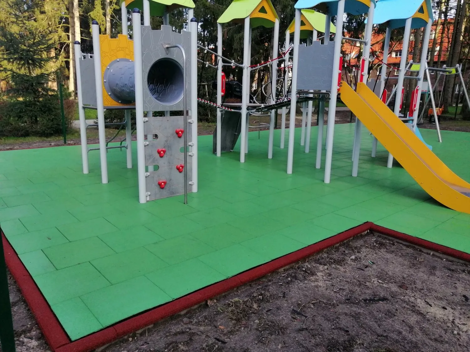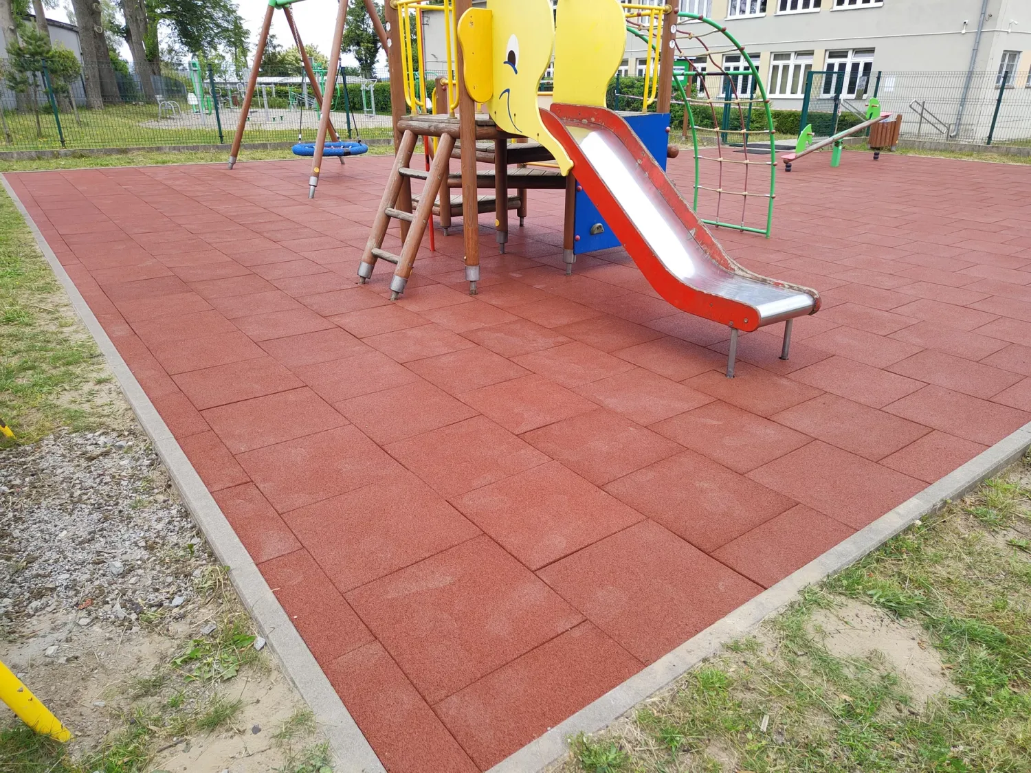 Gumová dlažba FLOMA ProF je ideální volbou, pokud potřebujete vytvořit bezpečný povrch pro dětská hřiště či venkovní posilovny, který odolává vnějším vlivům a mechanickému poškození, přičemž zůstává měkký a bezpečný při pádu.