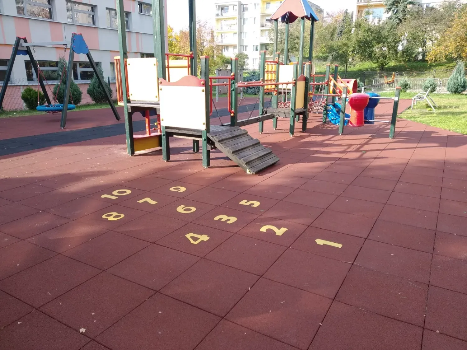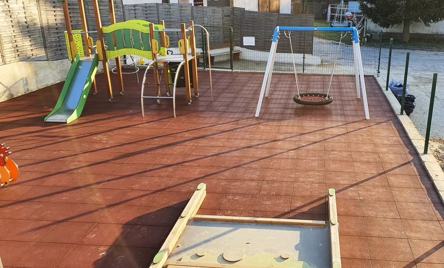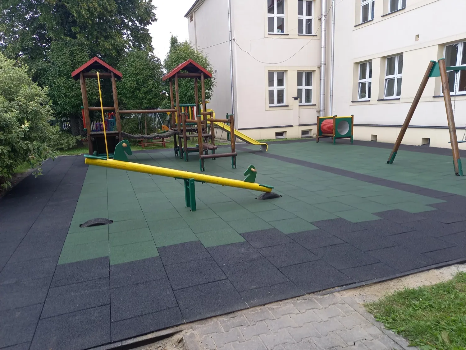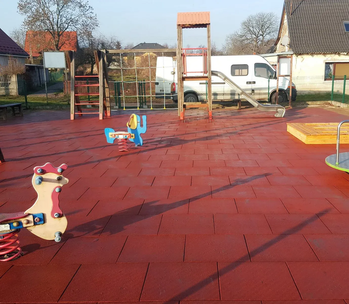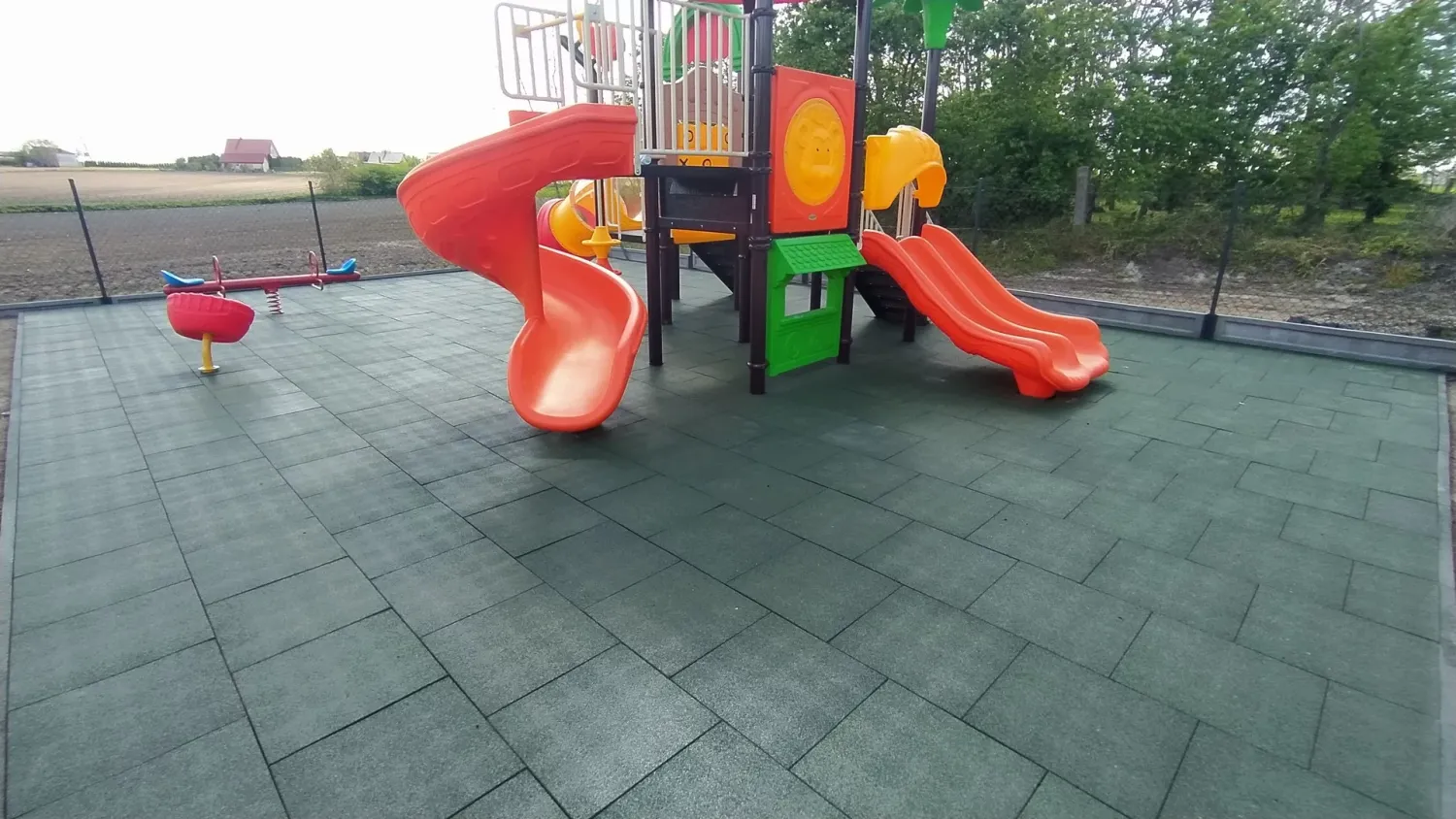 Gumová dlažba FLOMA ProF je ideální volbou, pokud potřebujete vytvořit bezpečný povrch pro dětská hřiště či venkovní posilovny, který odolává vnějším vlivům a mechanickému poškození, přičemž zůstává měkký a bezpečný při pádu.