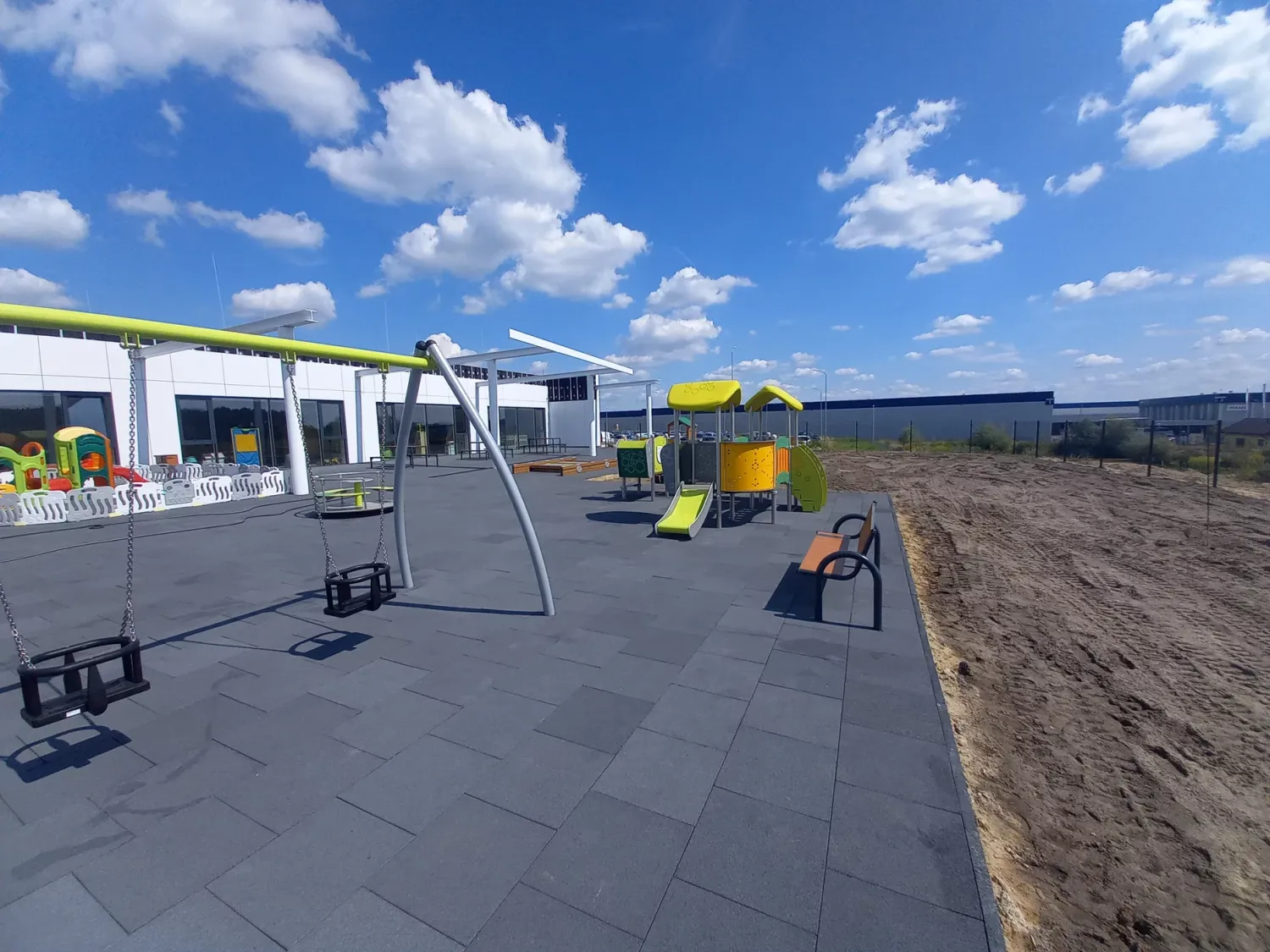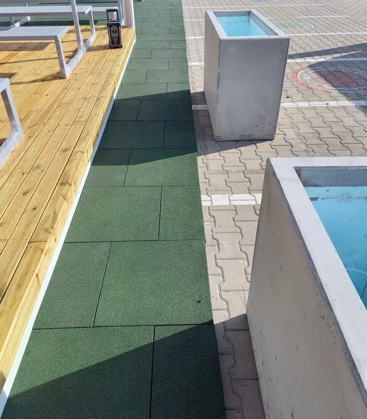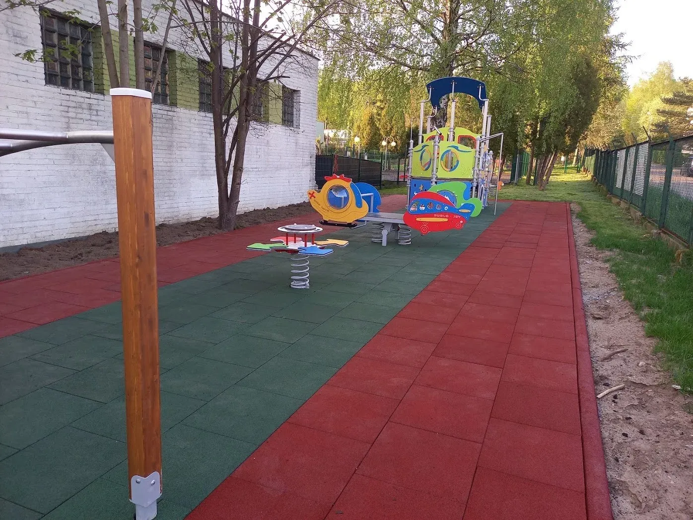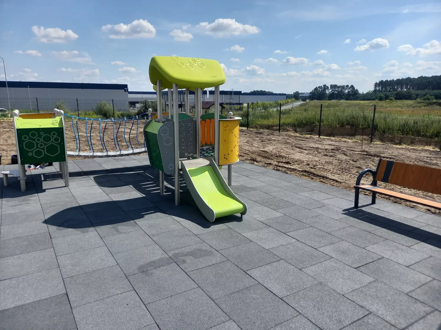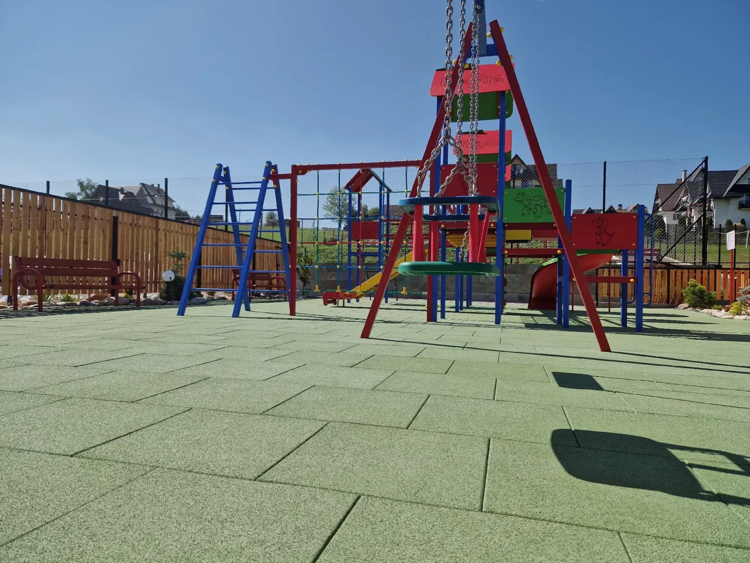 Gumová dlažba FLOMA ProF je ideální volbou, pokud potřebujete vytvořit bezpečný povrch pro dětská hřiště či venkovní posilovny, který odolává vnějším vlivům a mechanickému poškození, přičemž zůstává měkký a bezpečný při pádu.