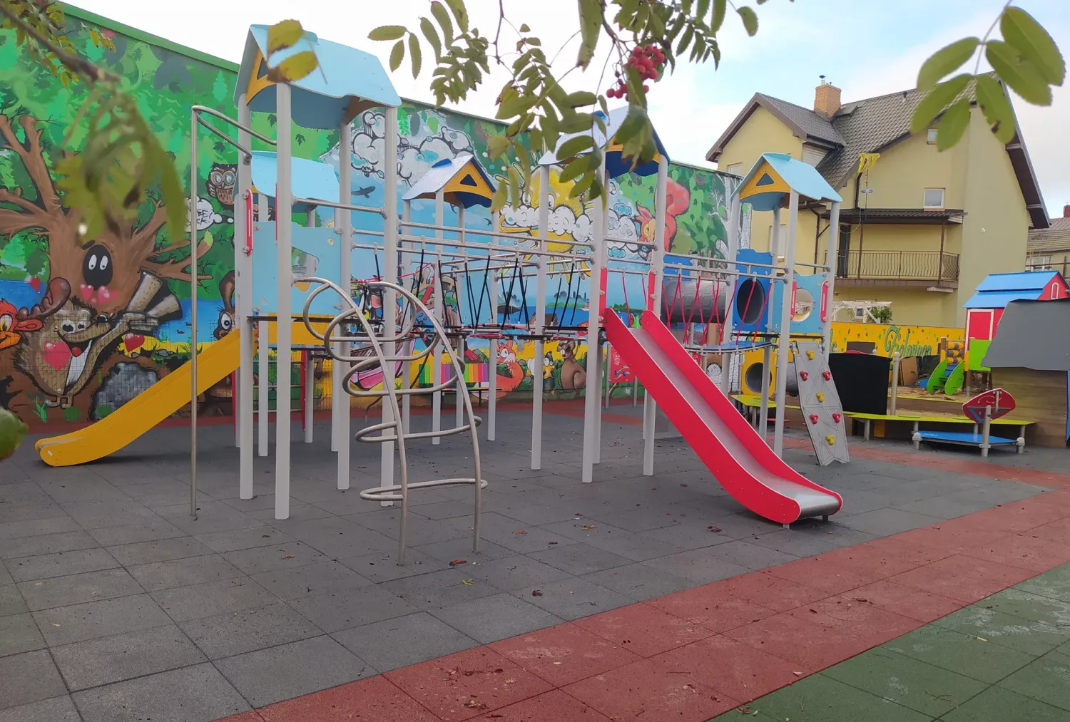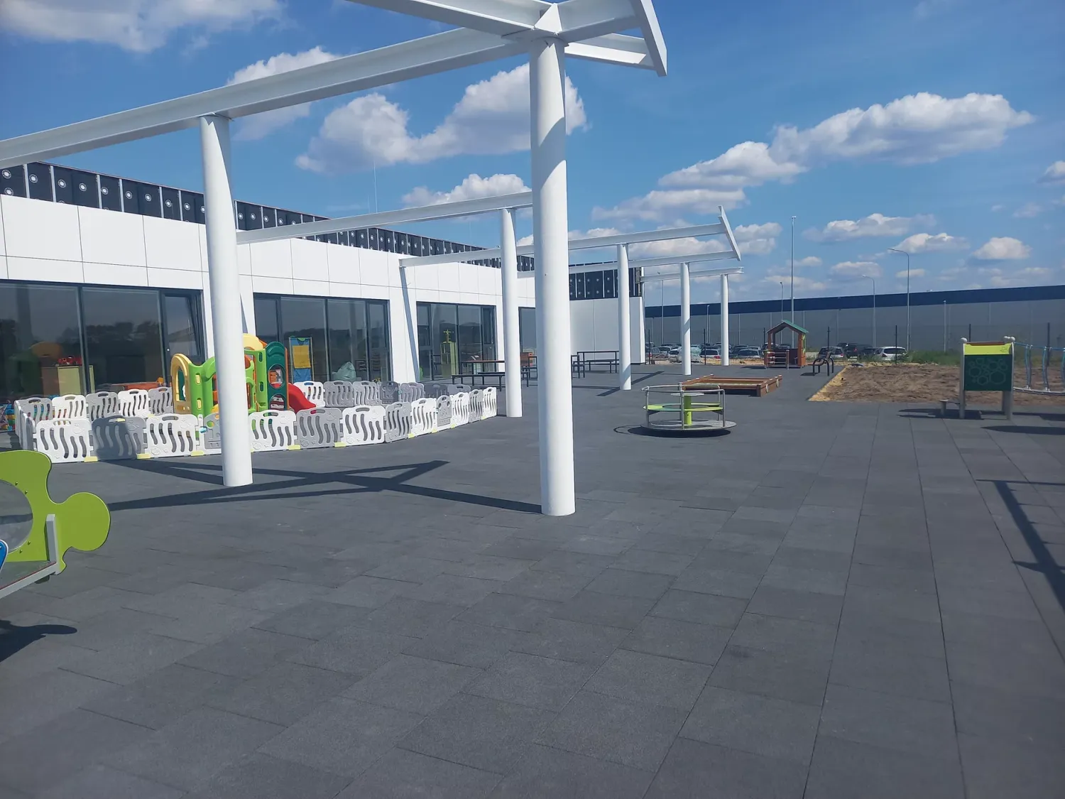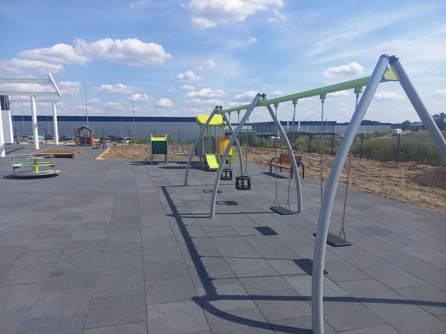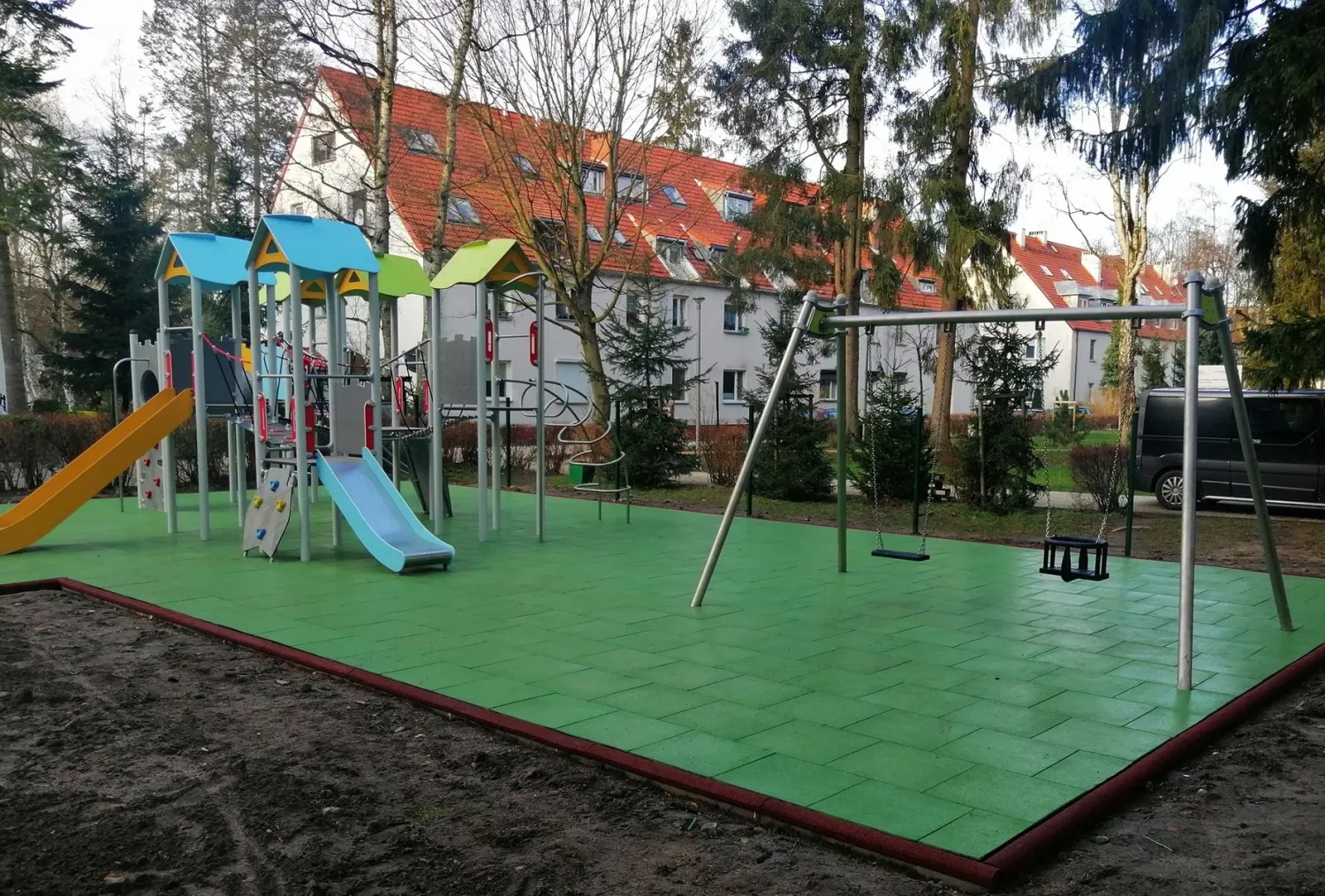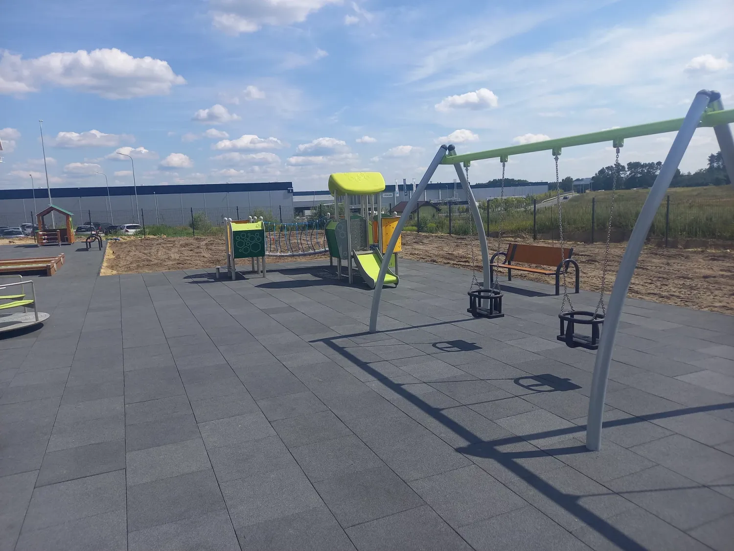 Gumová dlažba FLOMA ProF je ideální volbou, pokud potřebujete vytvořit bezpečný povrch pro dětská hřiště či venkovní posilovny, který odolává vnějším vlivům a mechanickému poškození, přičemž zůstává měkký a bezpečný při pádu.