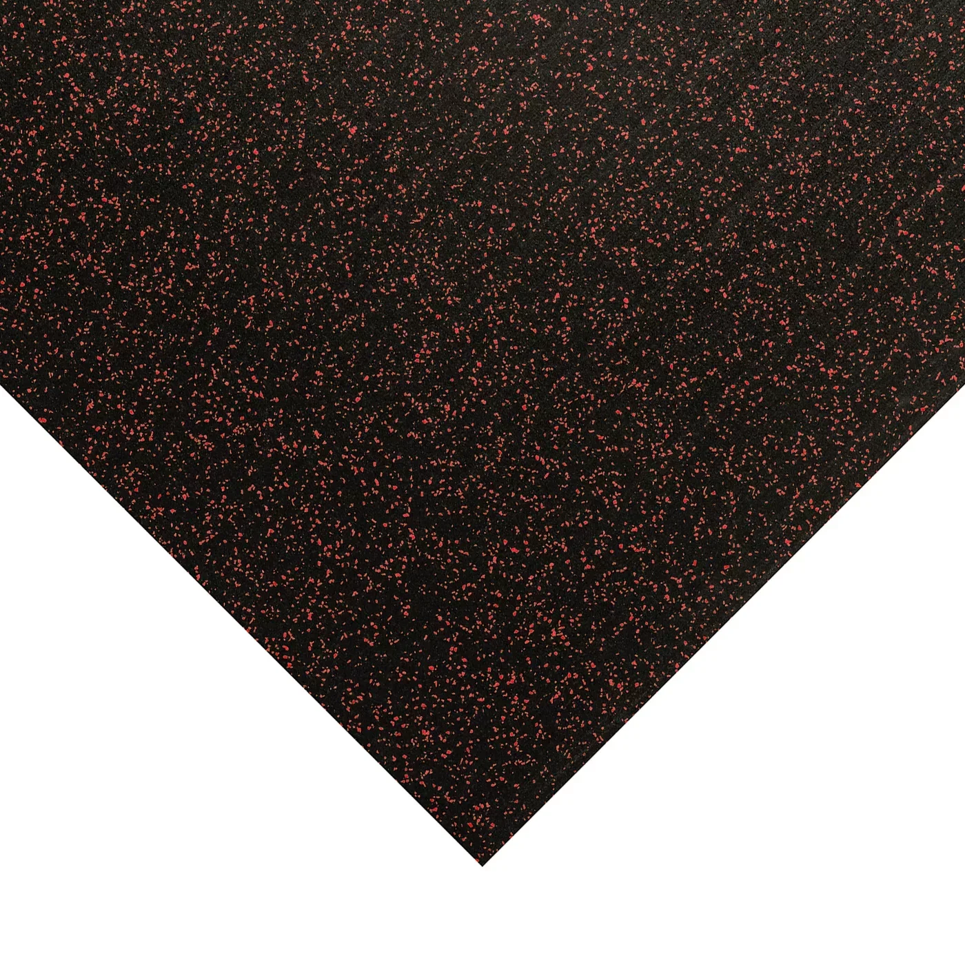 Černo-červená podlahová guma (role) FLOMA FitFlo SM1050 s příměsí 10 % EPDM barevného granulátu v provedení 10 % červená je ideální podlahovinou do domácích posiloven i komerčních fitness center. Díky výšce od 2 do 12 mm je možné přizpůsobit výběr konkrétním požadavkům na zatížení, tlumení a komfort.