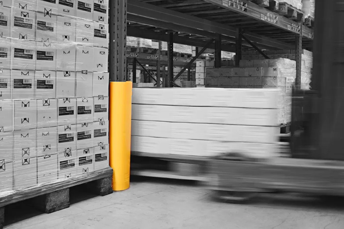 Žlutá ochrana regálů XL je univerzální ochrana regálových stojin RackBull se využívá k ochraně konstrukcí skladových regálů před poškozením způsobeným nárazy manipulační techniky (např. vysokozdvižnými vozíky) ve skladech, logistických centrech či výrobních závodech.