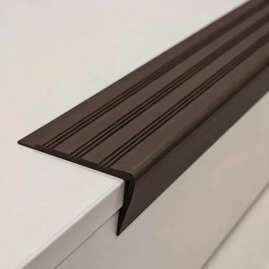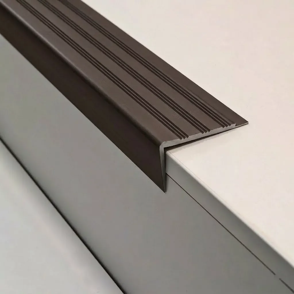 Schodová hrana je ideální doplněk pro vinylové podlahové krytiny, který zajistí estetické a funkční napojení podlahoviny v detailu. Doporučuje se pro aplikaci na betonové schody, kde je k povrchu lepena stejně jako samotná podlahovina.