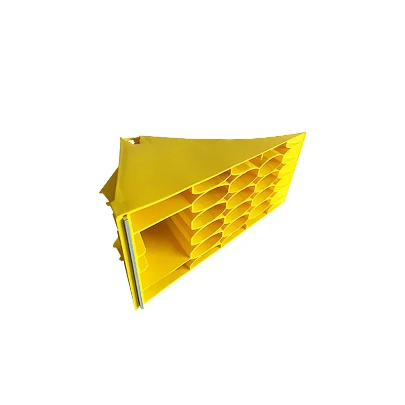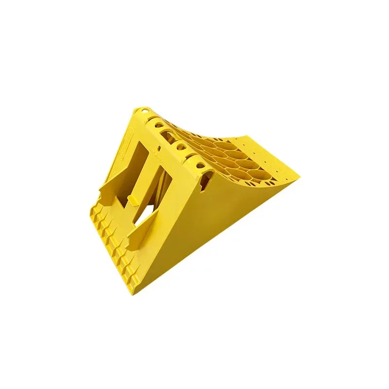 Žlutý plastový protiskluzový klín je vyroben z odolného termoplastického plastu a ocelovým výztužným prvkem představuje nezbytný bezpečnostní prvek pro vozidla. Výrazně žlutá barva zajišťuje viditelnost, zatímco perforovaná a zesílená konstrukce s protiskluzovým povrchem zaručuje maximální stabilitu na různých typech povrchů – asfaltu, štěrku i nezpevněném terénu.