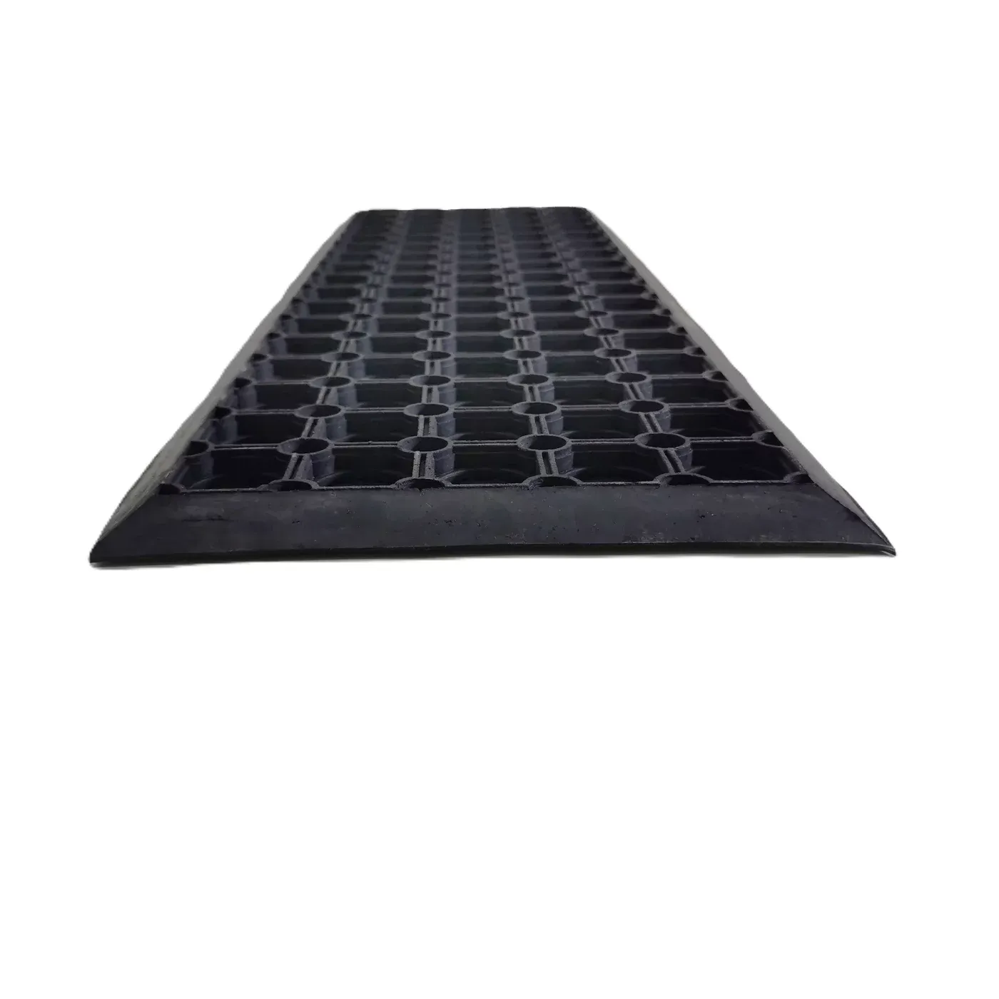 Gumová protiskluzová schodová rohož HoneyStep (schodový nášlap) výrazně snižuje riziko uklouznutí na schodech, zejména v zimním období či deštivém. Účinná i při námraze a sněhu, odolná vůči všem povětrnostním vlivům. Má stejný design jako vstupní rohože HoneyComb, tedy je vhodná na hrubé nečistoty jako je bahno a sníh.