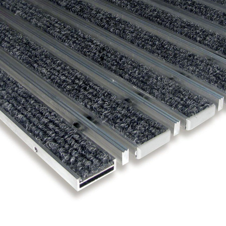 Základem rohože Alu Low Extra jsou odolné hliníkové profily o šířce 27 mm, které jsou pevně spojeny nerezovým lankem a odděleny pružnými pryžovými mezikroužky. Tato konstrukce zajišťuje stabilitu, vysokou životnost a umožňuje praktické stáčení rohože, což výrazně usnadňuje manipulaci a údržbu v běžném provozu.