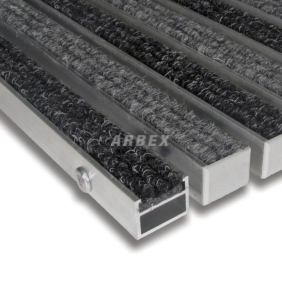Základem rohože Alu Standard jsou hliníkové profily o šířce 27 mm, které jsou spojeny nerezovým lankem a odděleny pryžovými mezikroužky, tím je umožněno stáčení rohože a jednodušší manipulaci při úklidu.
