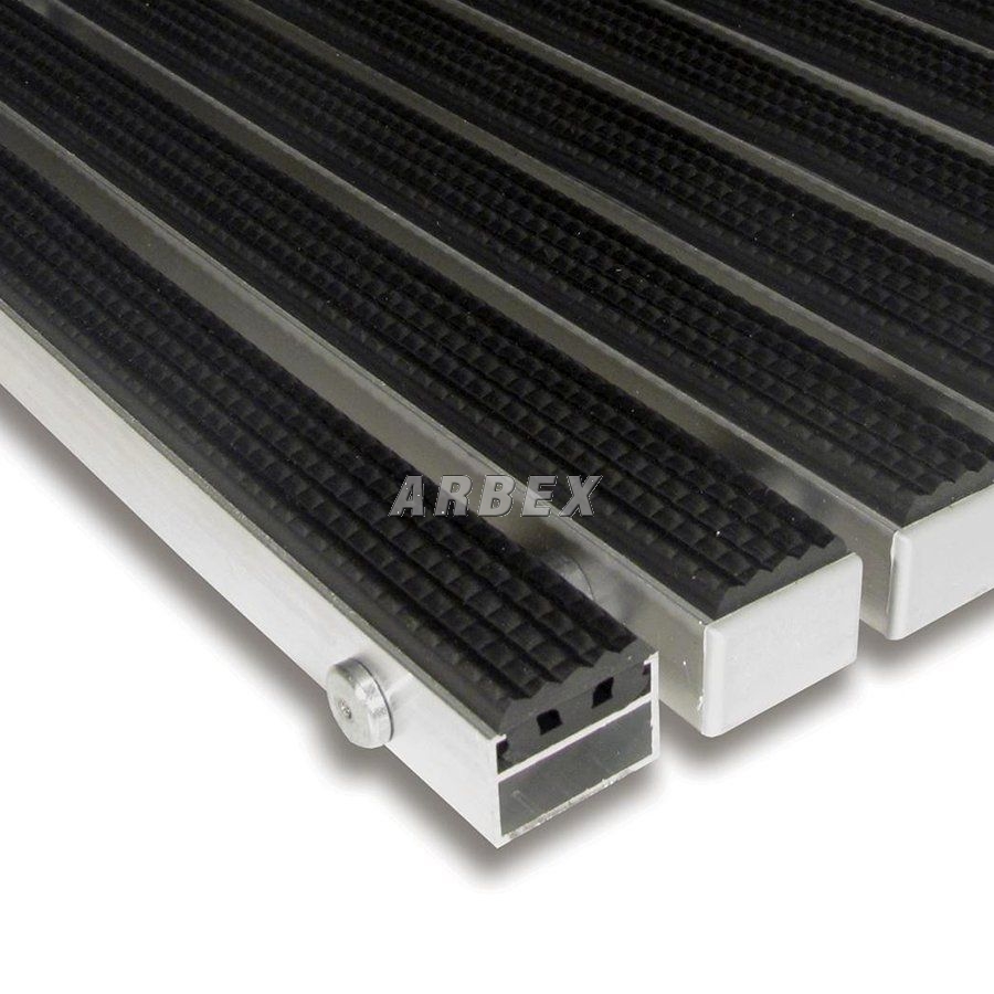 Základem rohože Alu Standard jsou hliníkové profily o šířce 27 mm, které jsou spojeny nerezovým lankem a odděleny pryžovými mezikroužky, tím je umožněno stáčení rohože a jednodušší manipulaci při úklidu.