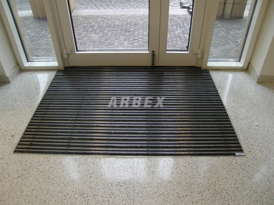 Základem rohože Alu Extra jsou hliníkové profily o šířce 27 mm, které jsou spojeny nerezovým lankem a odděleny pryžovými mezikroužky, tím je umožněno stáčení rohože a jednodušší manipulaci při úklidu.