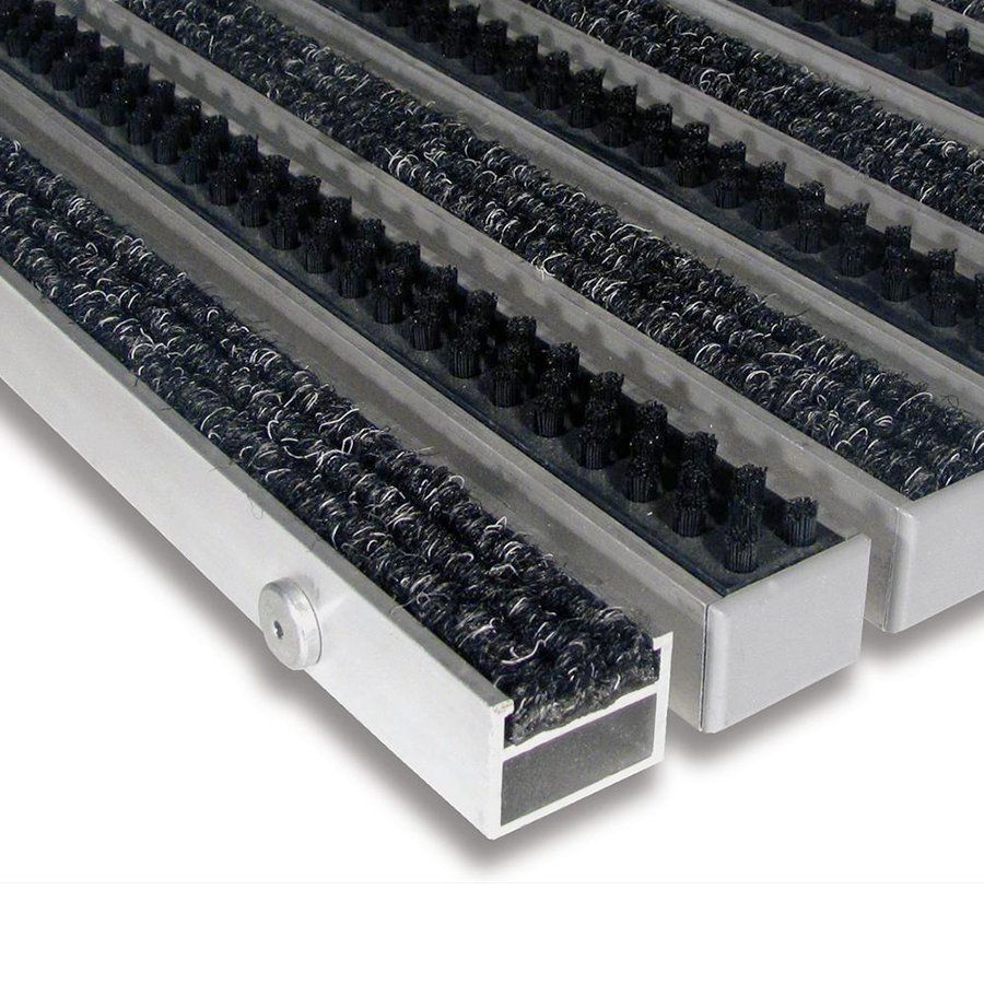Základem rohože Alu Extra jsou hliníkové profily o šířce 27 mm, které jsou spojeny nerezovým lankem a odděleny pryžovými mezikroužky, tím je umožněno stáčení rohože a jednodušší manipulaci při úklidu.