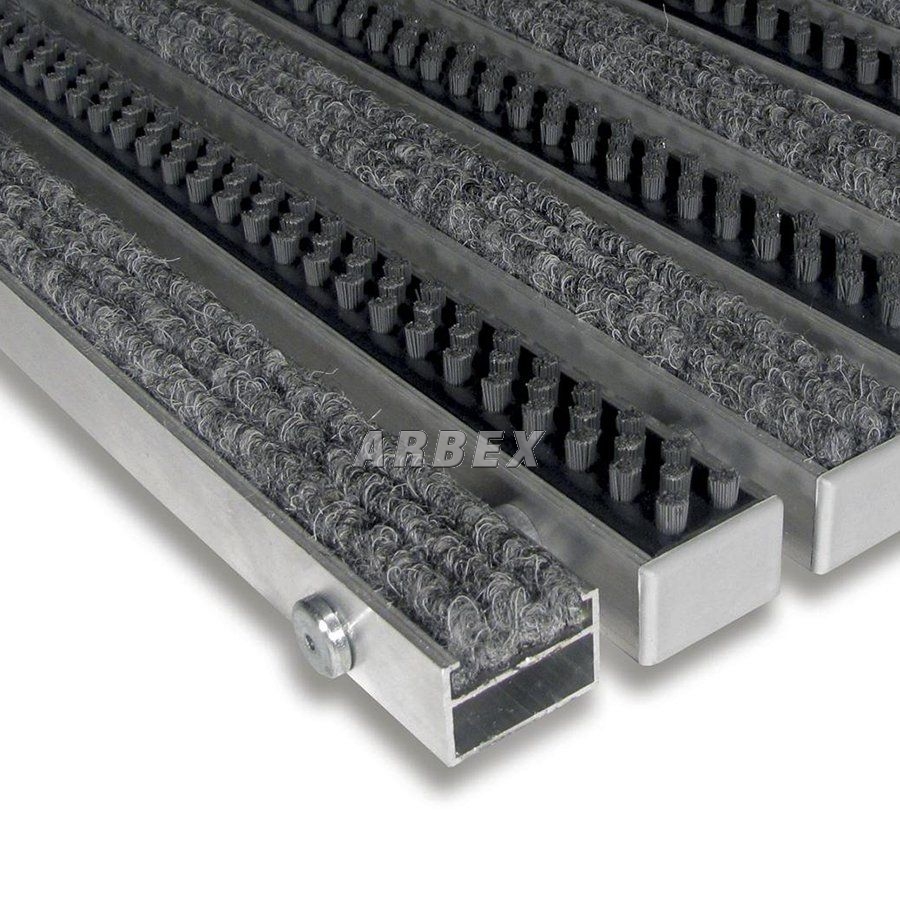 Základem rohože Alu Extra jsou hliníkové profily o šířce 27 mm, které jsou spojeny nerezovým lankem a odděleny pryžovými mezikroužky, tím je umožněno stáčení rohože a jednodušší manipulaci při úklidu.
