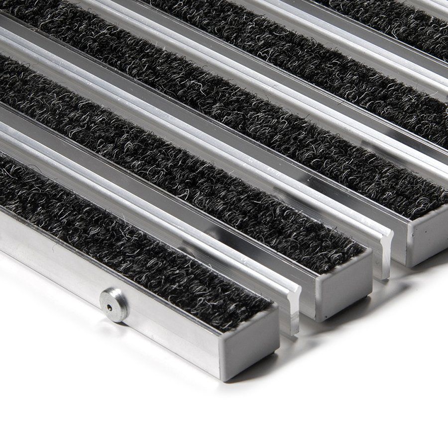 Základem rohože Alu Extra jsou hliníkové profily o šířce 27 mm, které jsou spojeny nerezovým lankem a odděleny pryžovými mezikroužky, tím je umožněno stáčení rohože a jednodušší manipulaci při úklidu.