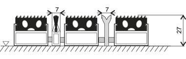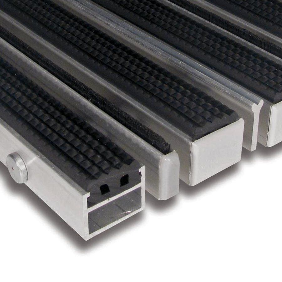 Základem rohože Alu Extra jsou hliníkové profily o šířce 27 mm, které jsou spojeny nerezovým lankem a odděleny pryžovými mezikroužky, tím je umožněno stáčení rohože a jednodušší manipulaci při úklidu.