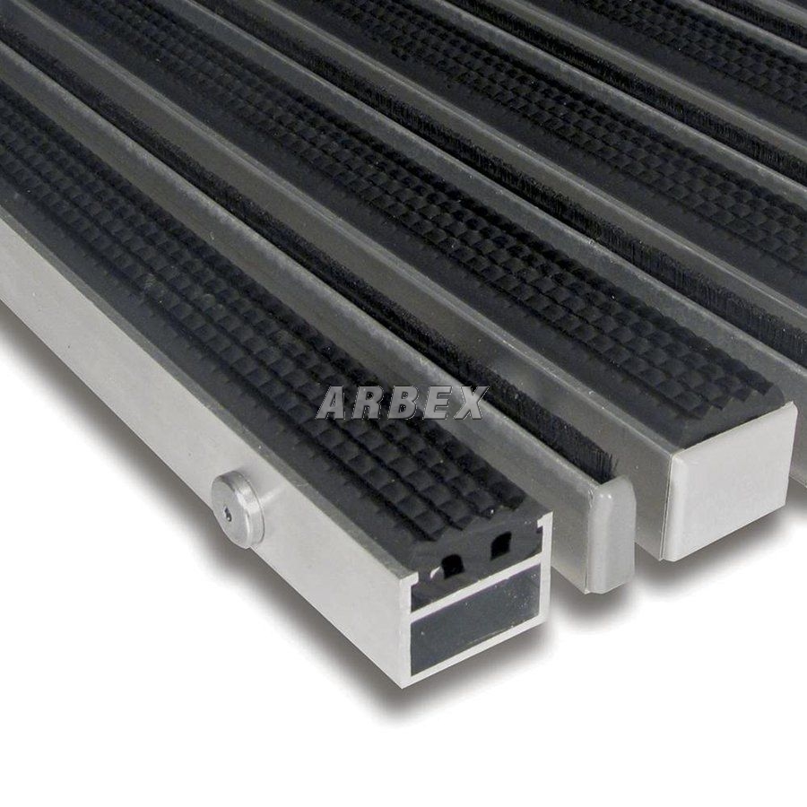Základem rohože Alu Extra jsou hliníkové profily o šířce 27 mm, které jsou spojeny nerezovým lankem a odděleny pryžovými mezikroužky, tím je umožněno stáčení rohože a jednodušší manipulaci při úklidu.
