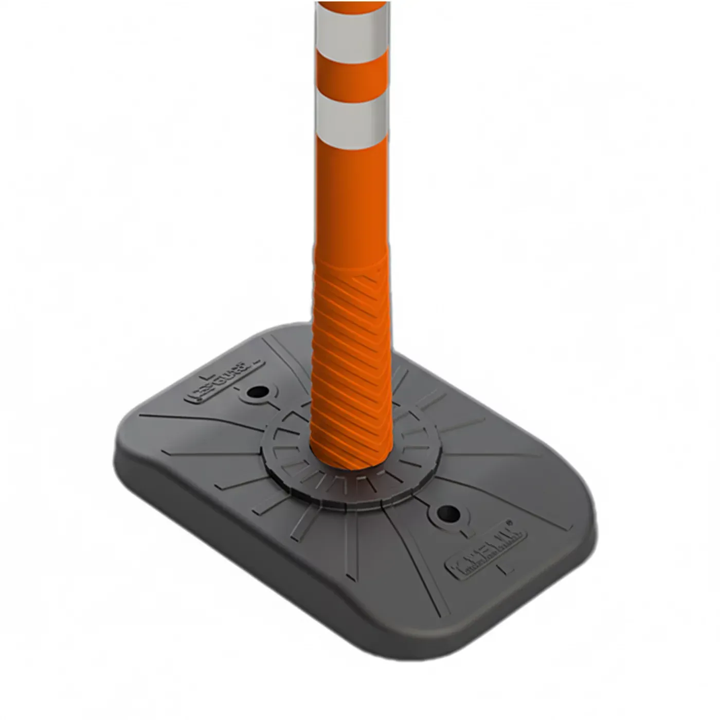 Konstrukce sloupku FLOMA WP38 je navržena pro profesionální nasazení a maximální variabilitu. Horní část umožňuje přímou instalaci dopravních značek, výstražných lamp či spojovacích madel bez nutnosti použití adaptérů. To dovoluje bleskově vytvářet souvislé zábrany a informační koridory. Hybridní materiál PVC + TPU garantuje stabilitu a pružnost v extrémním teplotním rozsahu od -20 °C do +60 °C, čímž je zajištěna dlouhá životnost při celoročním venkovním použití.