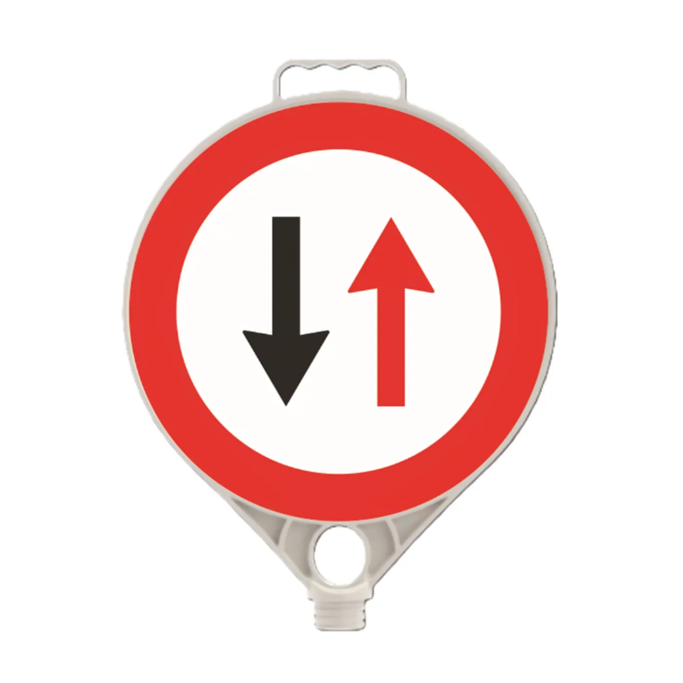 Dopravní značka Přednost protijedoucích vozidel v kruhovém provedení o průměru 28 cm představuje vysoce efektivní řešení pro okamžité a srozumitelné značení v terénu. Je vyrobena z odolného polypropylen karbonátu (PPC), který kombinuje vysokou mechanickou pevnost s extrémně nízkou hmotností. Tato značka je navržena pro bleskovou instalaci na vrcholy dopravních kuželů nebo sloupků, čímž během okamžiku promění standardní zábranu v plnohodnotný informační nebo výstražný systém.