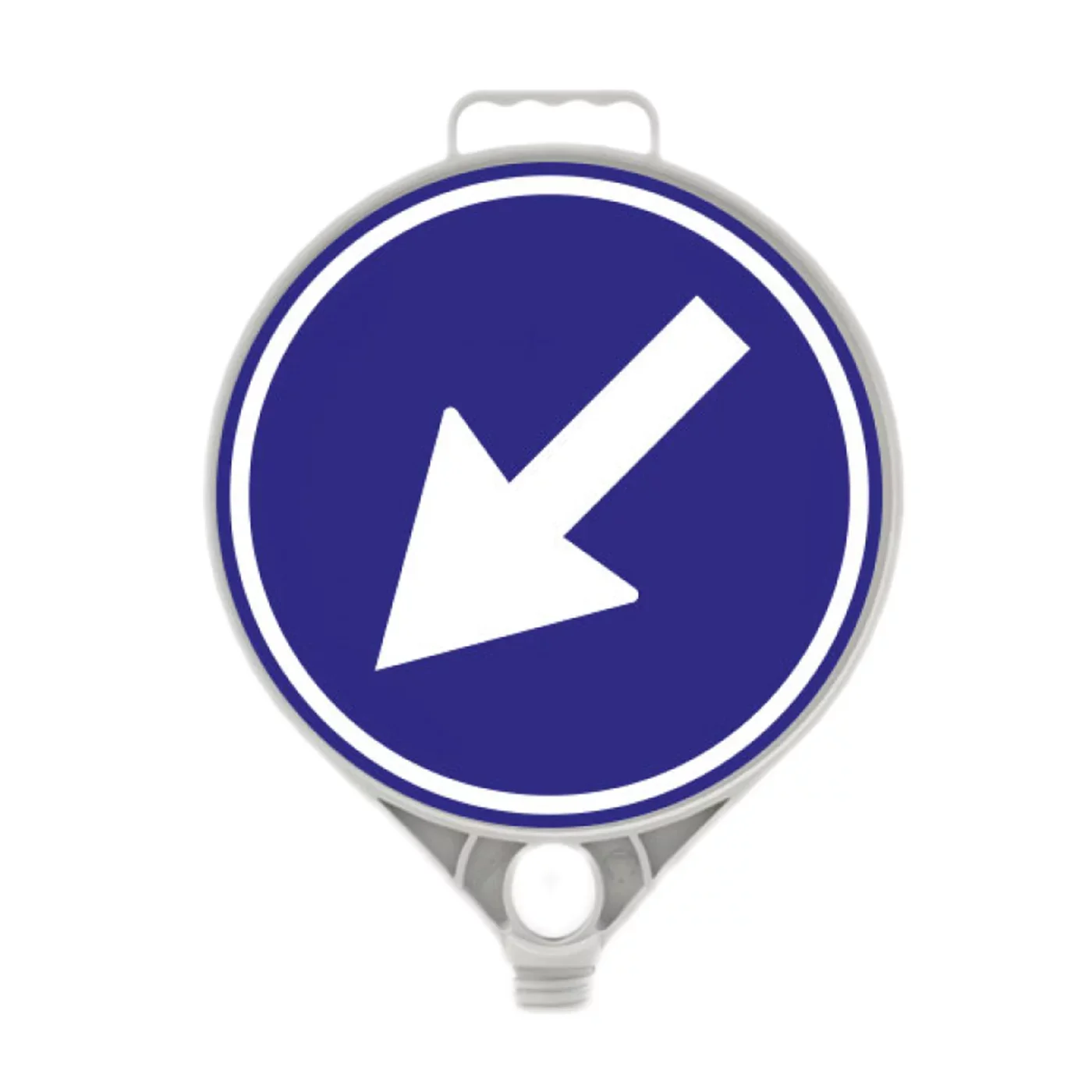 Dopravní značka Přikázaný směr objíždění vlevo v modrém provedení o průměru 28 cm je nezbytným doplňkem pro organizaci provozu v průmyslových areálech, skladech a na parkovištích. Je vyrobena z vysoce odolného polypropylen karbonátu (PPC), který zaručuje vynikající mechanickou pevnost při zachování minimální hmotnosti. Tato značka je navržena pro okamžité nasazení na vrcholy dopravních kuželů nebo sloupků, čímž umožňuje flexibilní navigaci bez nutnosti instalace trvalého značení.