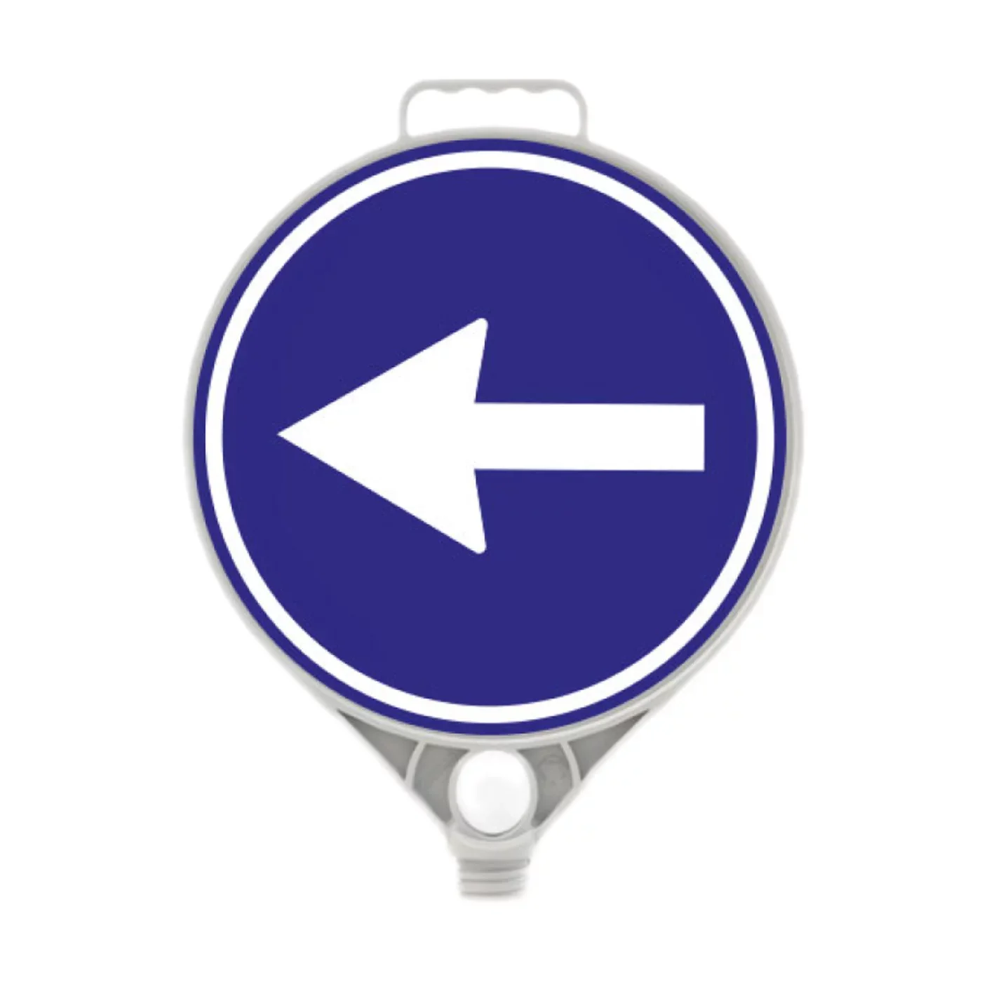 Dopravní značka Přikázaný směr jízdy zde vlevo v modrém provedení o průměru 28 cm je nezbytným doplňkem pro organizaci provozu v průmyslových areálech, skladech a na parkovištích. Je vyrobena z vysoce odolného polypropylen karbonátu (PPC), který zaručuje vynikající mechanickou pevnost při zachování minimální hmotnosti. Tato značka je navržena pro okamžité nasazení na vrcholy dopravních kuželů nebo sloupků, čímž umožňuje flexibilní navigaci bez nutnosti instalace trvalého a těžkého značení.