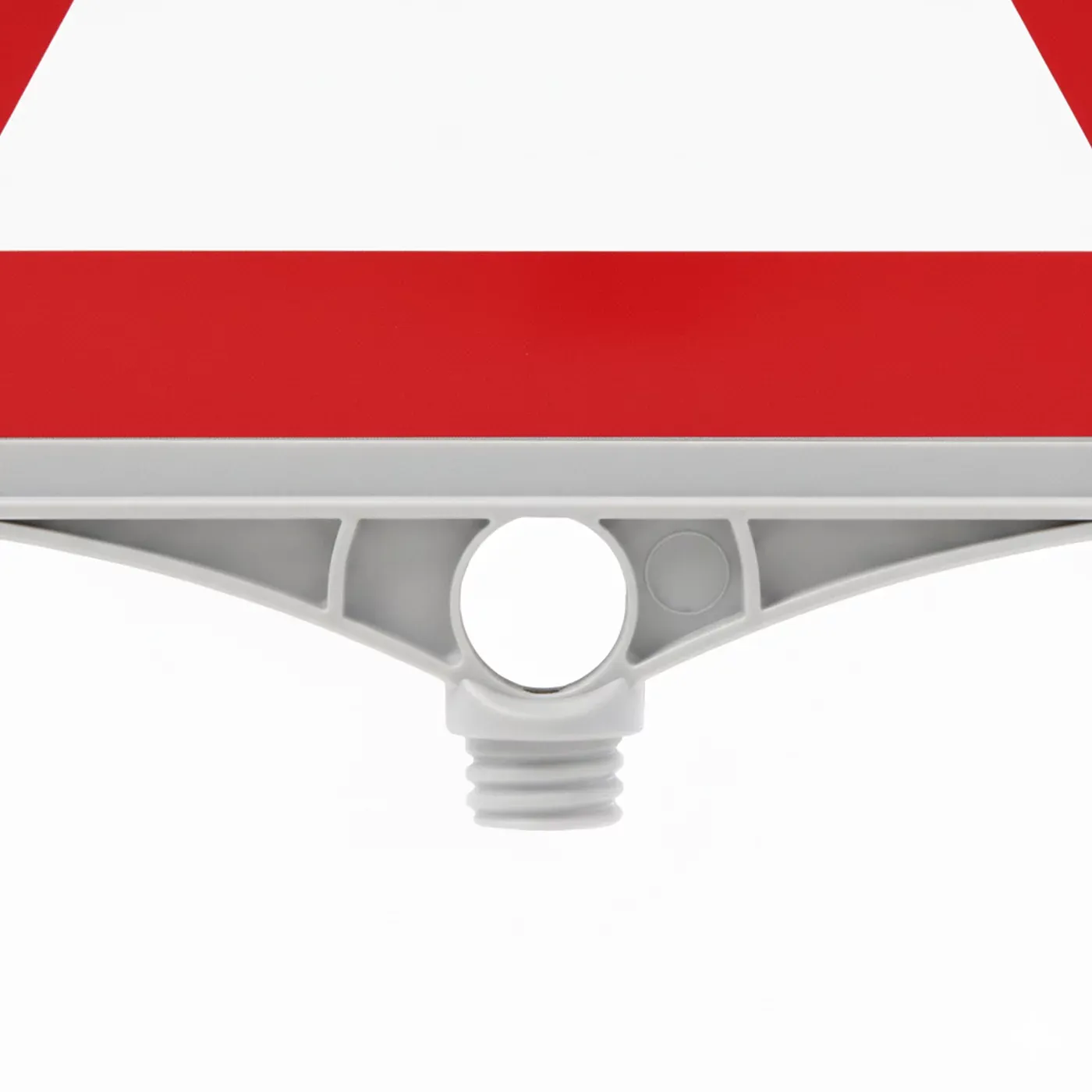 Výstražná dopravní značka v trojúhelníkovém červeno-bílém provedení o rozměrech 39 × 39 cm je klíčovým prvkem pro zajištění bezpečnosti v místech s dočasným rizikem. Je vyrobena z vysoce odolného polypropylen karbonátu (PPC), který kombinuje tuhost potřebnou pro venkovní použití s nízkou hmotností. Výrazné červené lemování na bílém podkladu tvoří univerzální varovný signál, který je okamžitě rozpoznatelný pro řidiče i chodce.