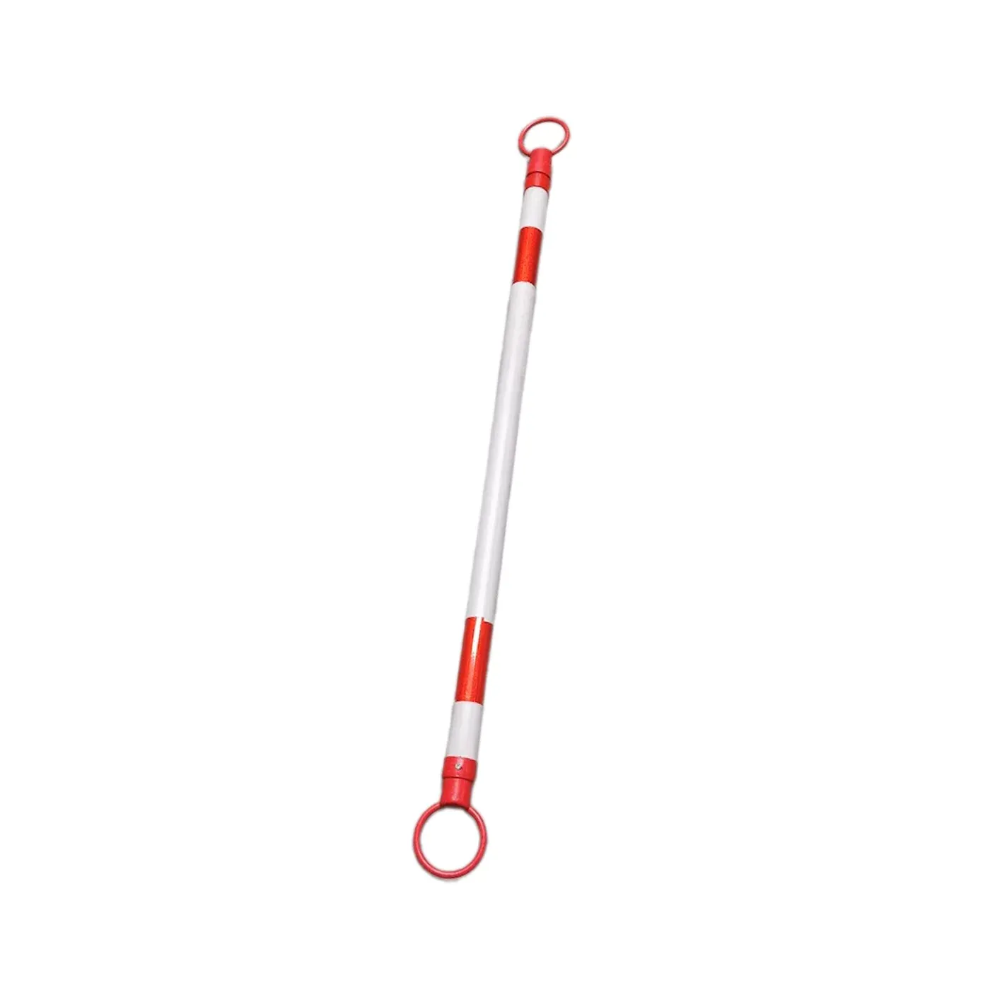 Tyč je na obou koncích opatřena univerzálními oky, která se jednoduše navléknou na vrchol většiny standardních dopravních kuželů. Toto řešení umožňuje bleskovou montáž i demontáž bez nutnosti použití nářadí či adaptérů. Výrazné červenobílé pruhování zaručuje, že bariéra bude nepřehlédnutelná pro řidiče i chodce, čímž výrazně zvyšuje bezpečnost v daném úseku.