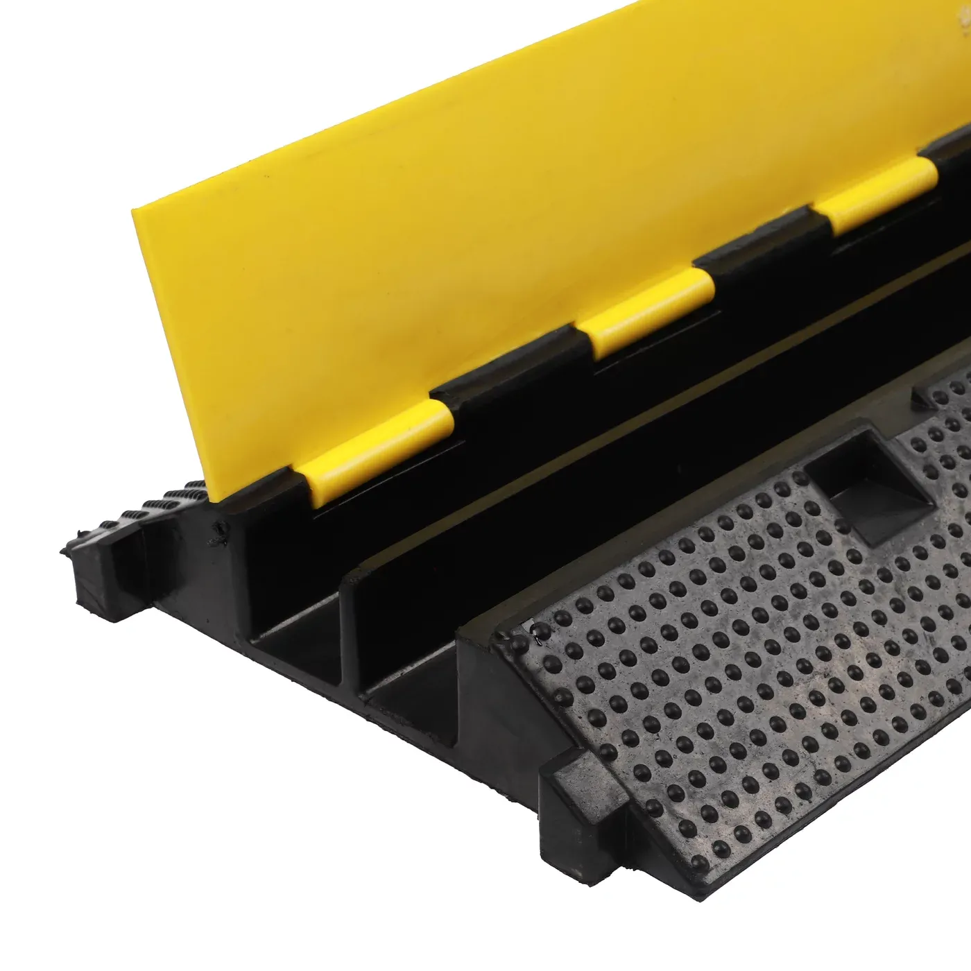 Tento ochranný systém disponuje dvěma velkorysými kanály o rozměrech 50 × 50 mm, což umožňuje bezpečné uložení silných tlakových hadic nebo svazků energetických kabelů. Je vyroben z prémiové kombinace technické gumy a PVC, která vyniká schopností absorbovat silné nárazy a odolávat chemikáliím, jako jsou benzín či oleje. Díky své hmotnosti 9,8 kg vykazuje most mimořádnou stabilitu. Kontrastní černo-žluté provedení navíc slouží jako jasný bezpečnostní prvek, který zvyšuje viditelnost bariéry i za zhoršených světelných podmínek.