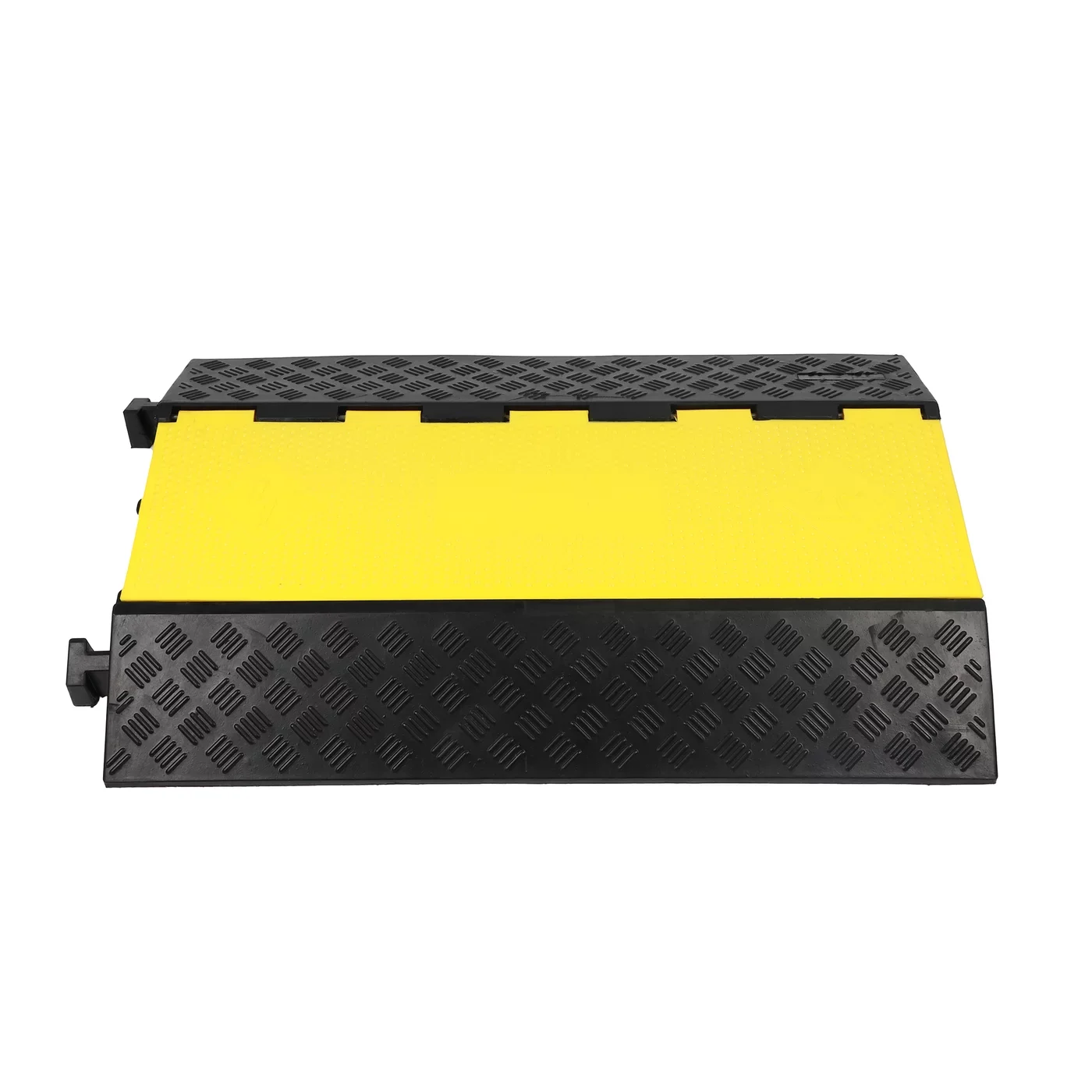 Tento model vyniká dvěma extra velkými kanály o rozměrech 95 × 75 mm, které jsou speciálně navrženy pro vedení silných průmyslových hadic nebo svazků vysokonapěťových kabelů. Je vyroben z vysoce odolné směsi technické gumy a PVC, která poskytuje mimořádnou strukturální pevnost a schopnost pohlcovat silné vibrace a nárazy. Díky své vysoké hmotnosti 18,6 kg most perfektně sedí na podkladu. Kontrastní černo-žluté provedení funguje jako nepřehlédnutelný varovný signál, který zajišťuje maximální viditelnost bariéry a bezpečnost všech účastníků provozu.