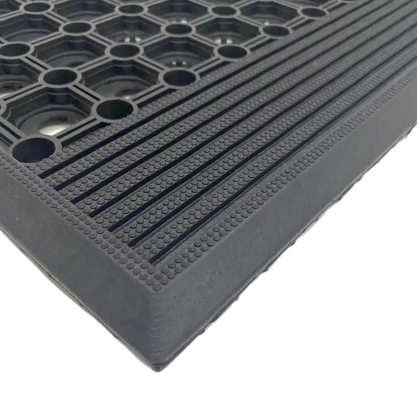 Gumová vstupní rohož FLOMA HoneyComb Ramp Welcome představuje vysoce efektivní řešení pro udržení čistoty ve vašem objektu. Tato venkovní čistící rohož kombinuje otevřenou strukturu s pevnou částí obsahující nápis Welcome a pevnými okraji. Rohožka velmi dobře odstraňuje nečistoty z obuvi. Díky svému hezkému designu a odolnosti je ideální volbou pro málo a středně frekventované vstupy, kde je kladen důraz na funkčnost i bezpečnost.
