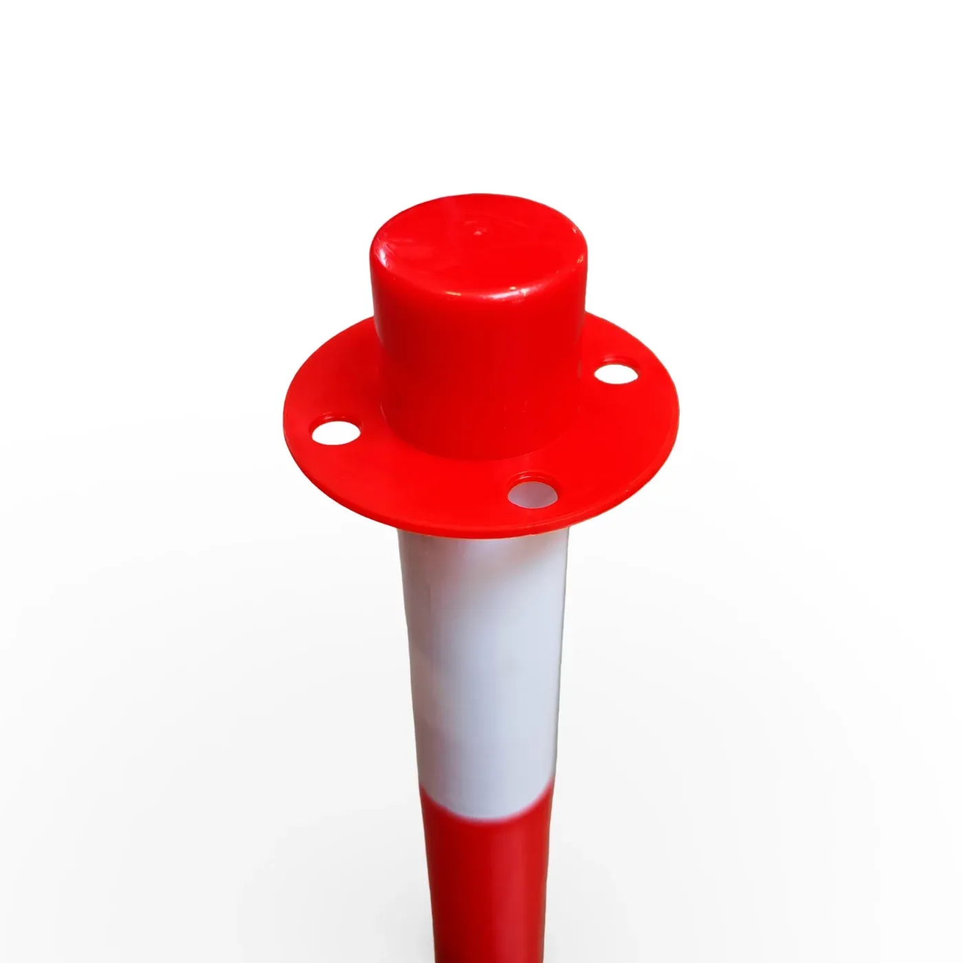 Maximální viditelnost zajišťuje střídavé bílo-červené provedení, které je díky vysokému kontrastu barev snadno rozpoznatelné i ve velkých halách nebo venkovních prostorách. Horní část sloupku je vybavena očkem pro snadné připevnění plastového řetězu (řetěz není součástí balení), což umožňuje během okamžiku vytvořit souvislou dočasnou zábranu nebo oddělit specifické části provozu od veřejně přístupných zón.