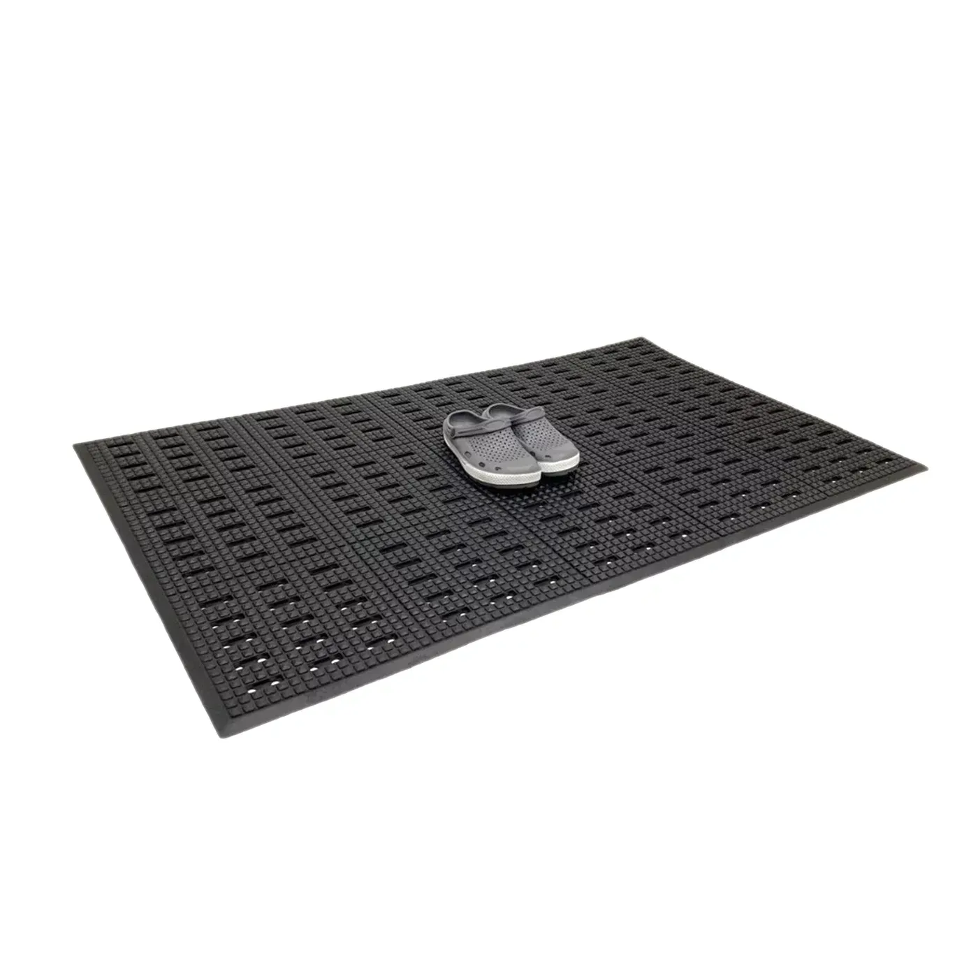 - Efektivní drenážní systém: Otvory v rohoži umožňují okamžitý odvod tekutin a propadávání nečistot, takže povrch zůstává bezpečný a suchý.