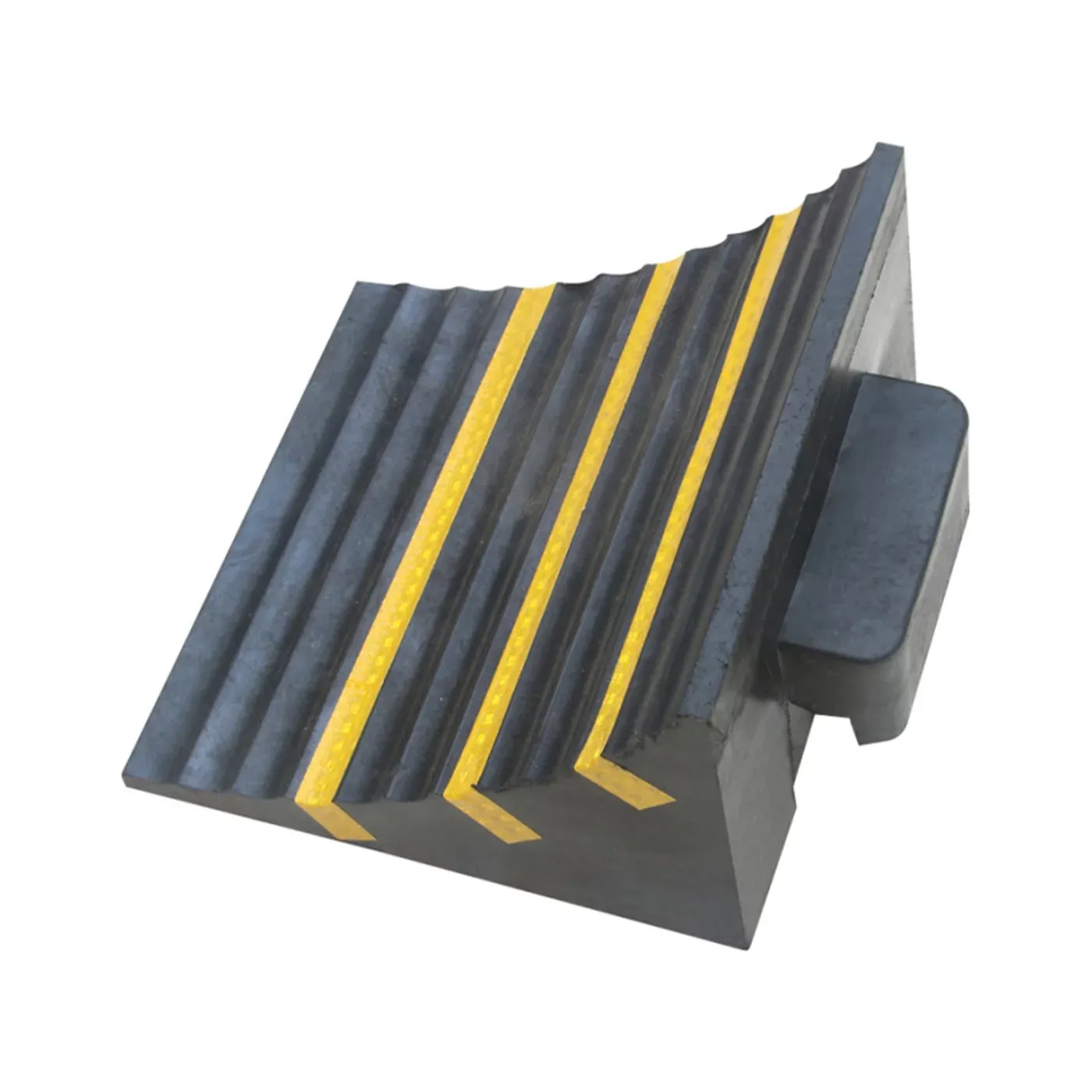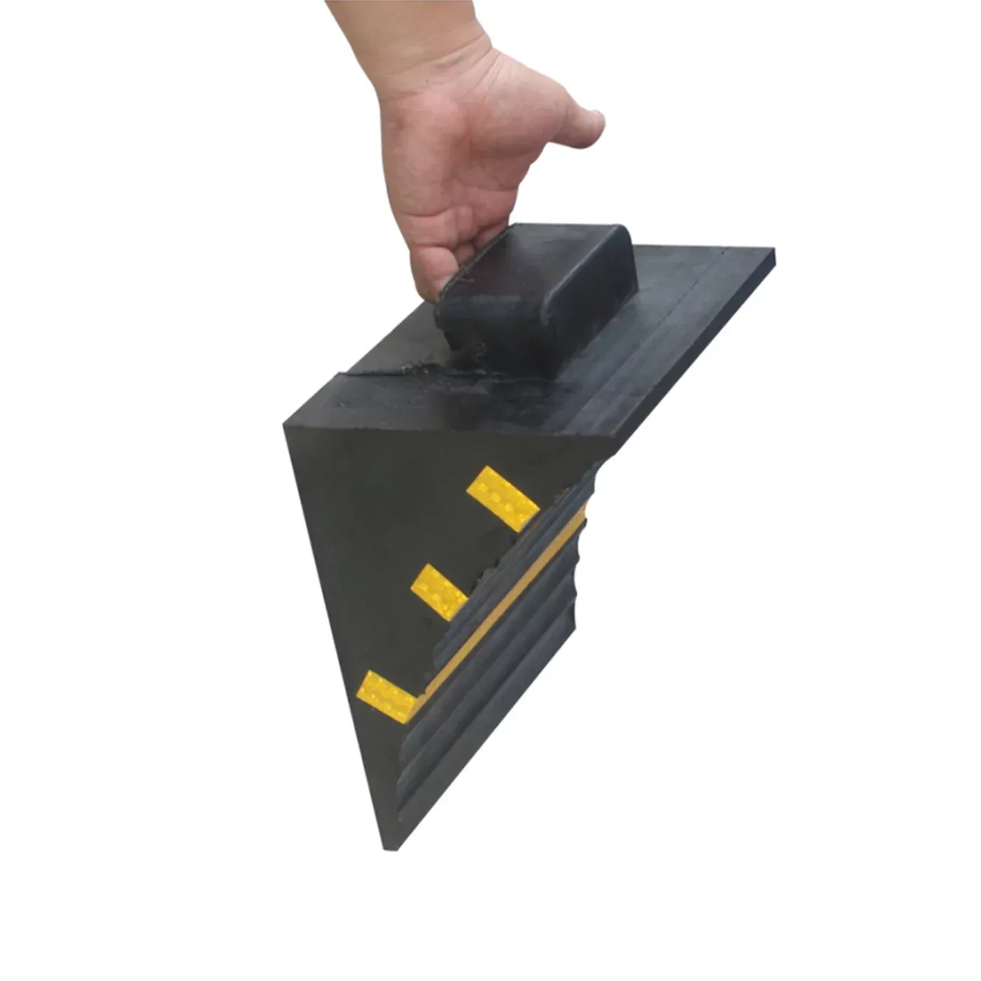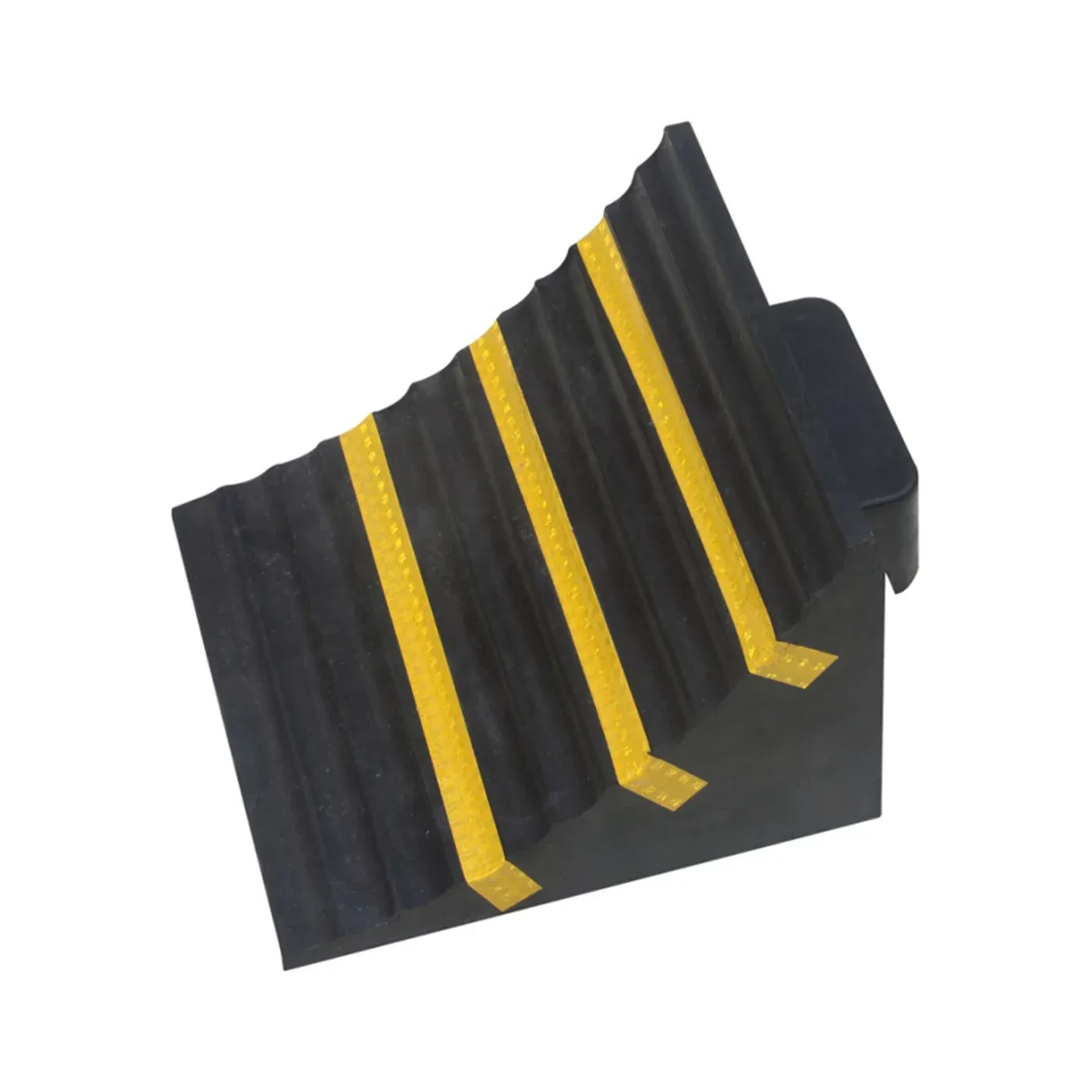 Klíčovým prvkem pro zvýšení bezpečnosti jsou tři integrované žluté reflektory, které zaručují perfektní viditelnost klínu v noci, v šeru skladů nebo za nepříznivého počasí. Speciální protiskluzový povrch v kombinaci s mimořádnou vahou 5,5 kg a širokou opěrnou plochou 25 cm zajišťuje, že klín pevně drží na podkladu a odolá tlaku pneumatik plně naložených nákladních souprav i těžké stavební mechanizace.
