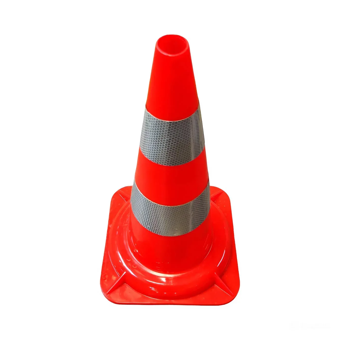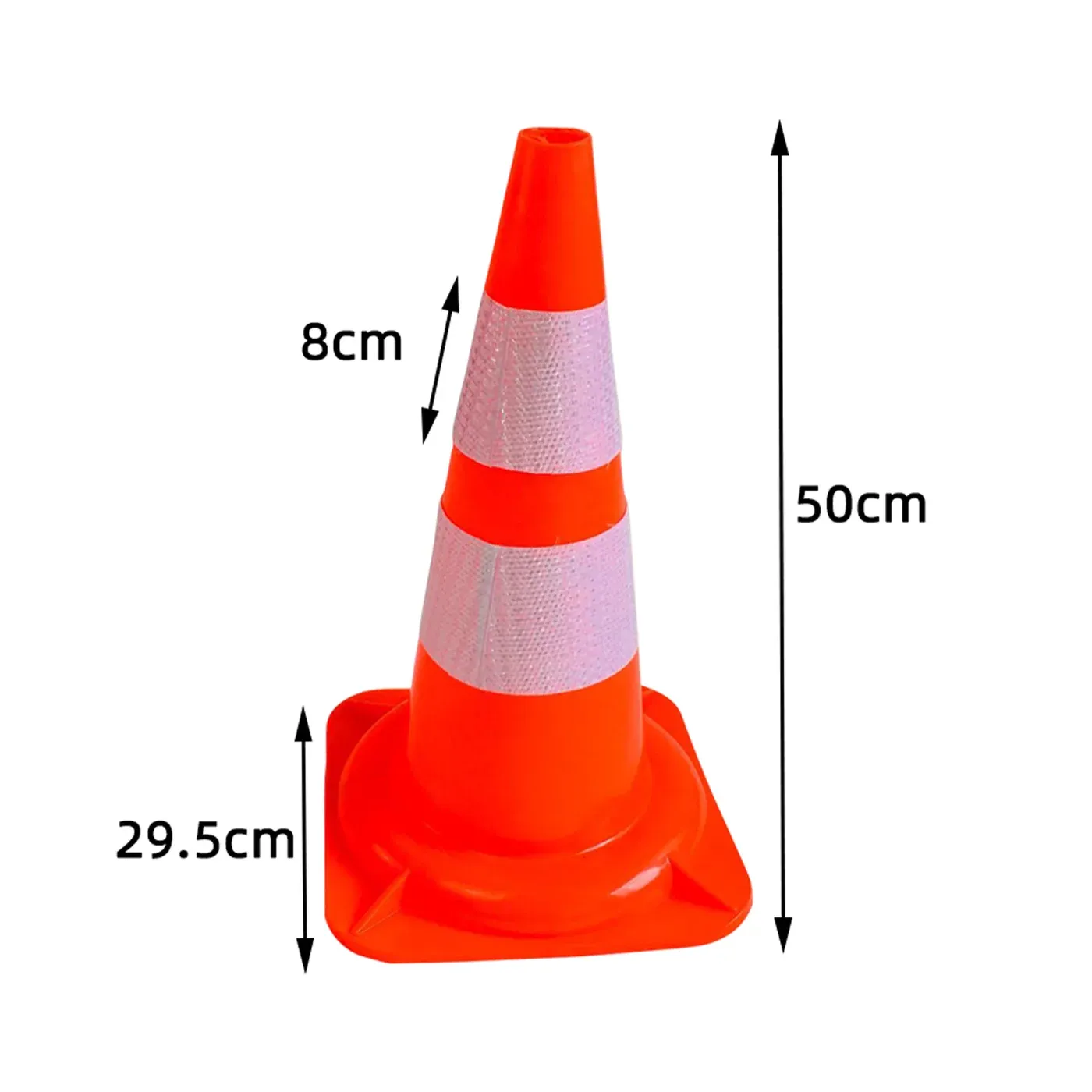 Dopravní kužel je vyroben z vysoce kvalitního PVC, které vyniká vysokou elasticitou a mechanickou odolností. Materiál je navržen tak, aby odolával UV záření a teplotním výkyvům, což zajišťuje jeho barevnou stálost a dlouhou životnost i při trvalém venkovním nasazení. Navzdory své robustnosti si zachovává hmotnost 1 kg, což umožňuje snadné přenášení a stohování, čímž šetří místo při skladování a přepravě.