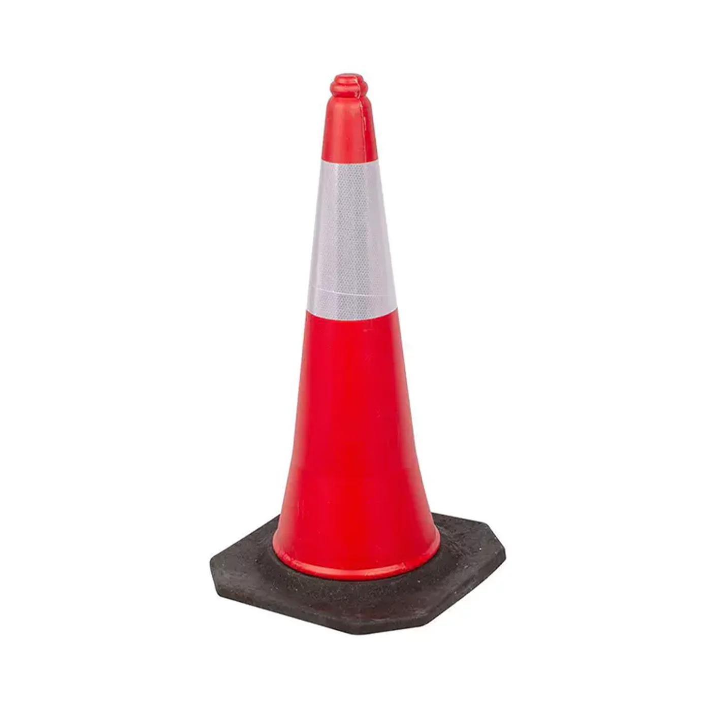 Dopravní kužel je vyroben z prvotřídního polyethylenu (PE) v kombinaci s těžkým gumovým podstavcem. Použitý materiál vyniká vysokou tvarovou pamětí a odolností proti drcení – při náhodném kontaktu se kužel nedeformuje trvale. Materiál je plně UV stabilní a vysoce odolný vůči chemickým vlivům i teplotním extrémům, což zaručuje jeho profesionální nasazení po mnoho let bez ztráty barvy či mechanických vlastností.