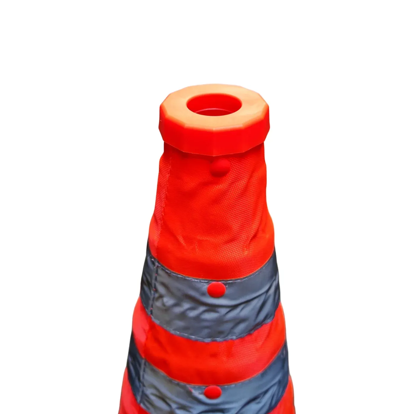 Absolutní špičku v bezpečnosti zajišťuje výrazné oranžové provedení doplněné o reflexní pruh. Tato trojitá reflexní plocha pokrývá podstatnou část těla kuželu, čímž vytváří intenzivní světelný odraz za tmy, mlhy či deště. Stabilní čtvercová základna o rozměru 24 × 24 cm zajišťuje vynikající stabilitu a vysokou odolnost proti poryvům větru i extrémní tlakové vlně od projíždějící těžké techniky.