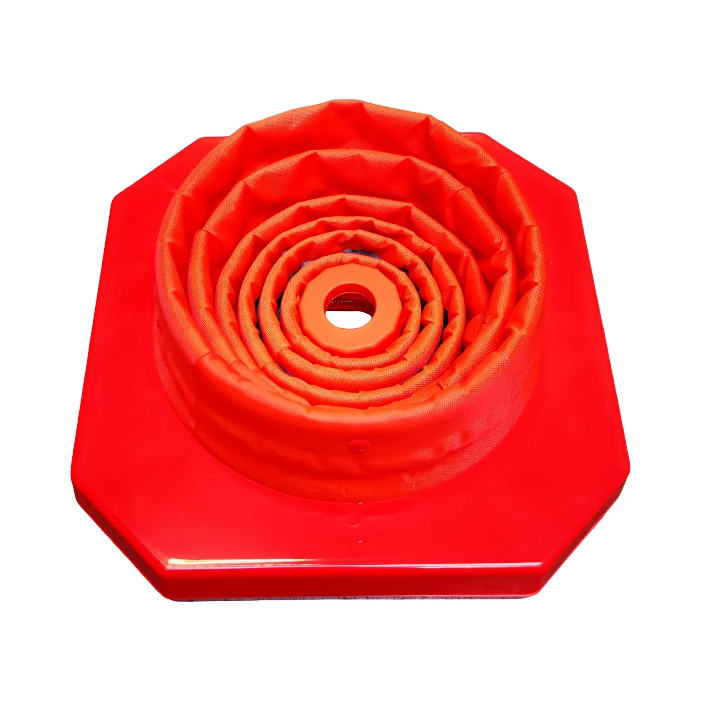 Dopravní kužel je vyroben z prvotřídního plastu, které vyniká mimořádnou elasticitou a tvarovou pamětí. Materiál je plně rezistentní vůči UV záření, mrazu i chemickým vlivům, což zaručuje jeho dlouhodobou spolehlivost a barevnou stálost při každodenním nasazení v nejnáročnějších venkovních podmínkách. Navzdory své velikosti umožňuje kónický tvar snadné stohování, což usnadňuje transport většího množství jednotek na místo zásahu.