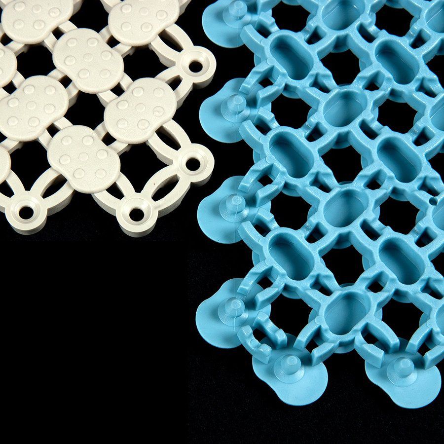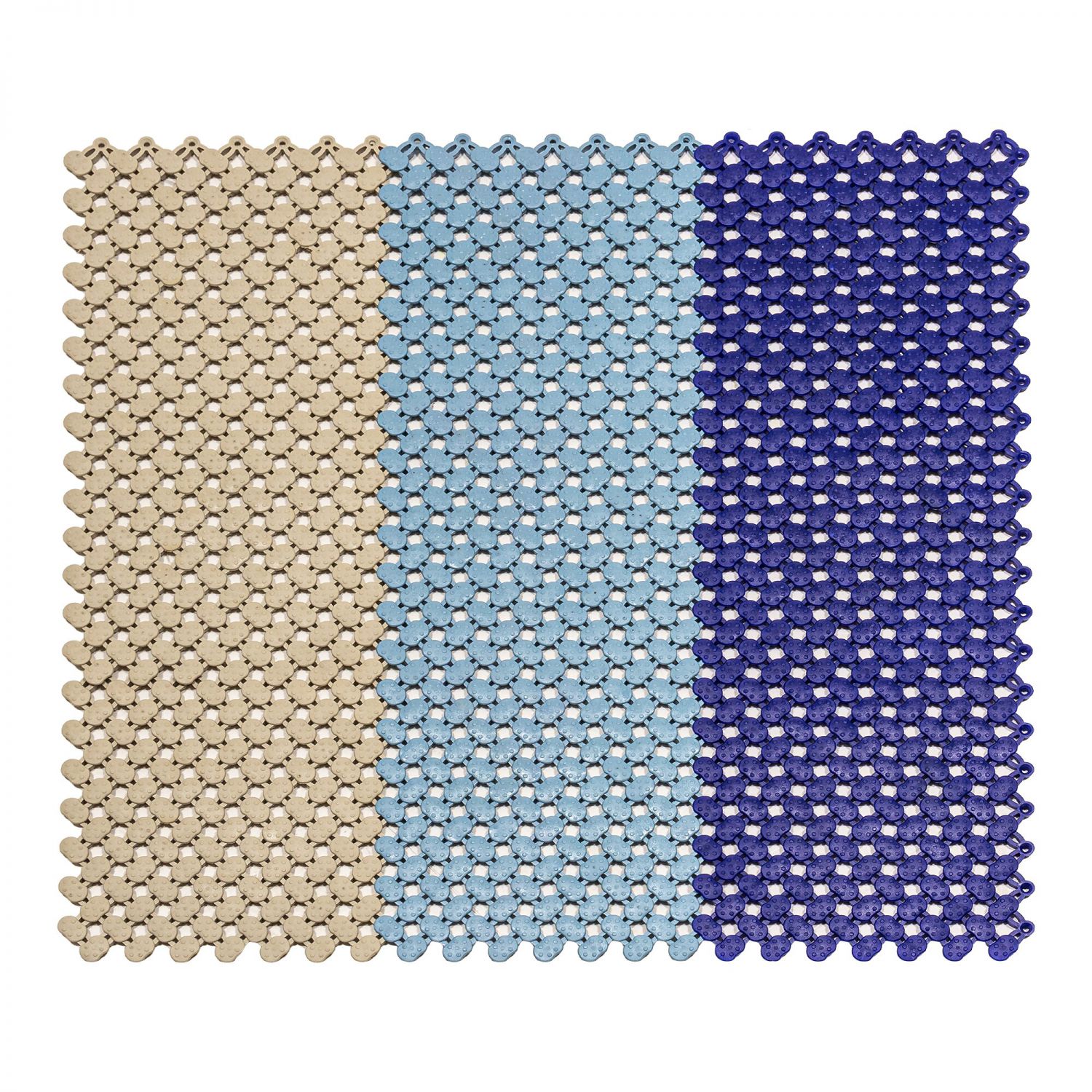 Rohožka je modulární, což umožnuje dosáhnout v podstatě jakéhokoliv rozměru a to velice snadným napojením jednotlivých modulů na sebe (viz foto). Lze také kombinovat různé barvy (nabízíme béžovou, zelenou, modrou) a tím dosáhnout zajímavých designů. V případě potřeby lze rohož zkrátit (seříznout nožem), aby rohož pasovala například okolo stěn.