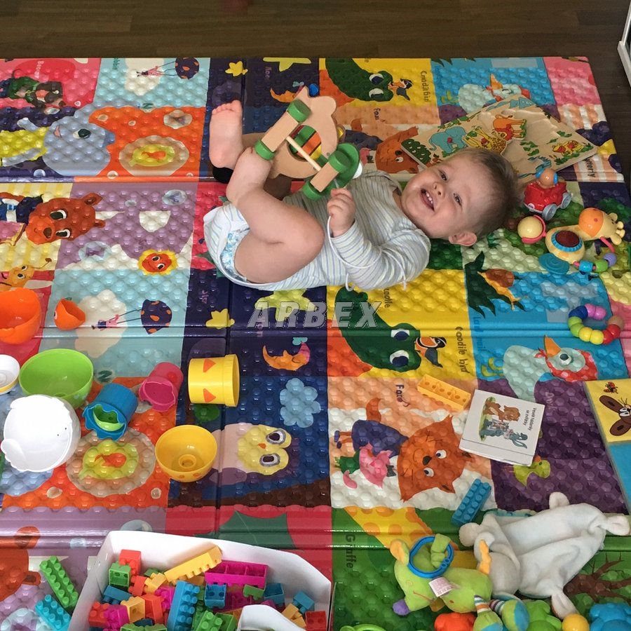 Měkký a na dotek velice příjemný povrch této podložky je ideální pro hraní i lehké cvičení Vašeho drobečka, přičemž se snižuje riziko úrazu způsobeným nárazem o povrch podložky. Užíváním dětské podložky jsou zároveň chráněny podlahové krytiny nebo koberce před pošpiněním a poškozením.