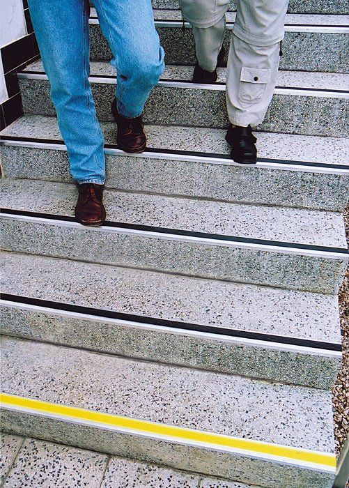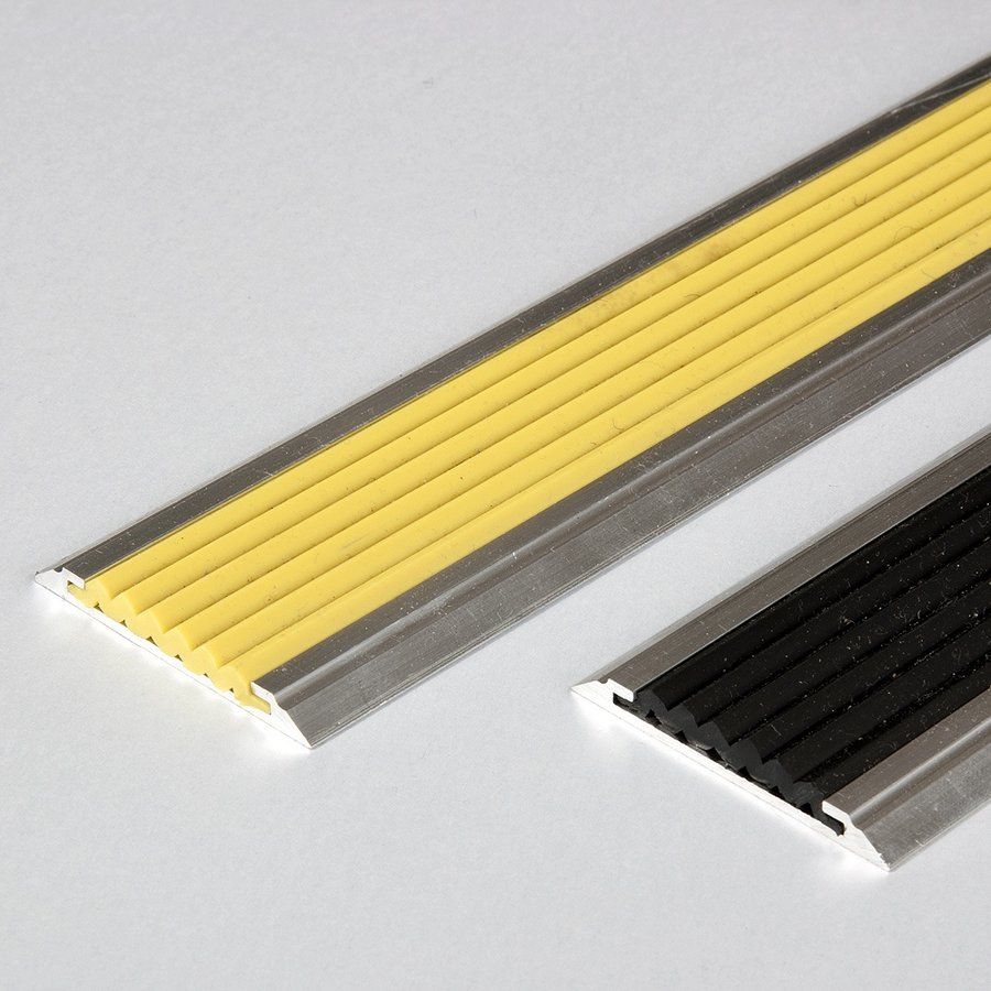 Žlutá barva gumového protiskluzového pásku je obvykle použita pro první a poslední schod (často určuje bezpečnostní předpis provozu), zbylé schody jsou obvykle s černou gumovou páskou. V případě, že se gumová páska časem opotřebí, ji lze zakoupit i samostatně a v liště vyměnit.