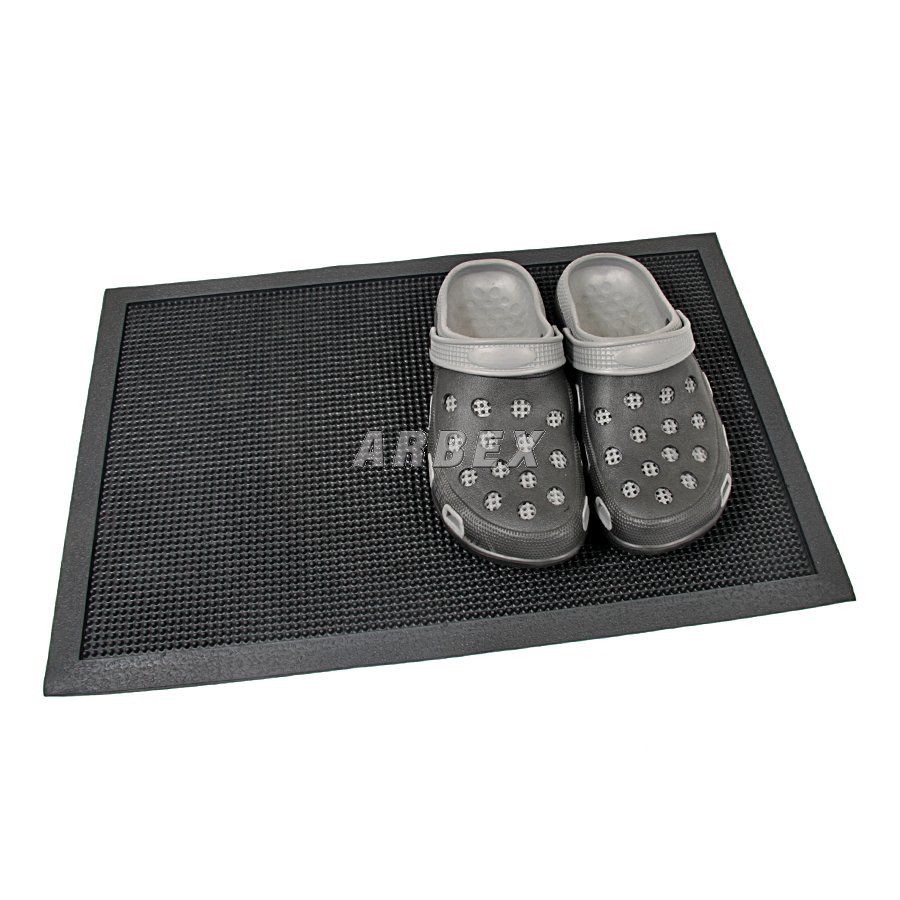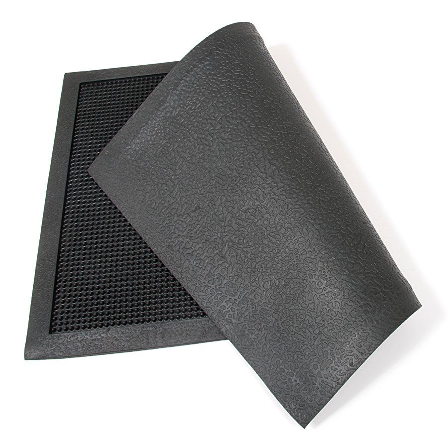 Malá gumová rohožka s kartáčovým efektem vhodná pro odstranění drobných nečistot - bahno, tráva, zbytky sněhu. Své uplatnění nejčastěji rohož najde před dveřmi bytů, rodinných domů či kanceláří. Díky obvodové hraně, která zadrží vodu na rohoží, rohož často slouží i jako odkládací plocha pro mokrou obuv / odkapávač na boty.