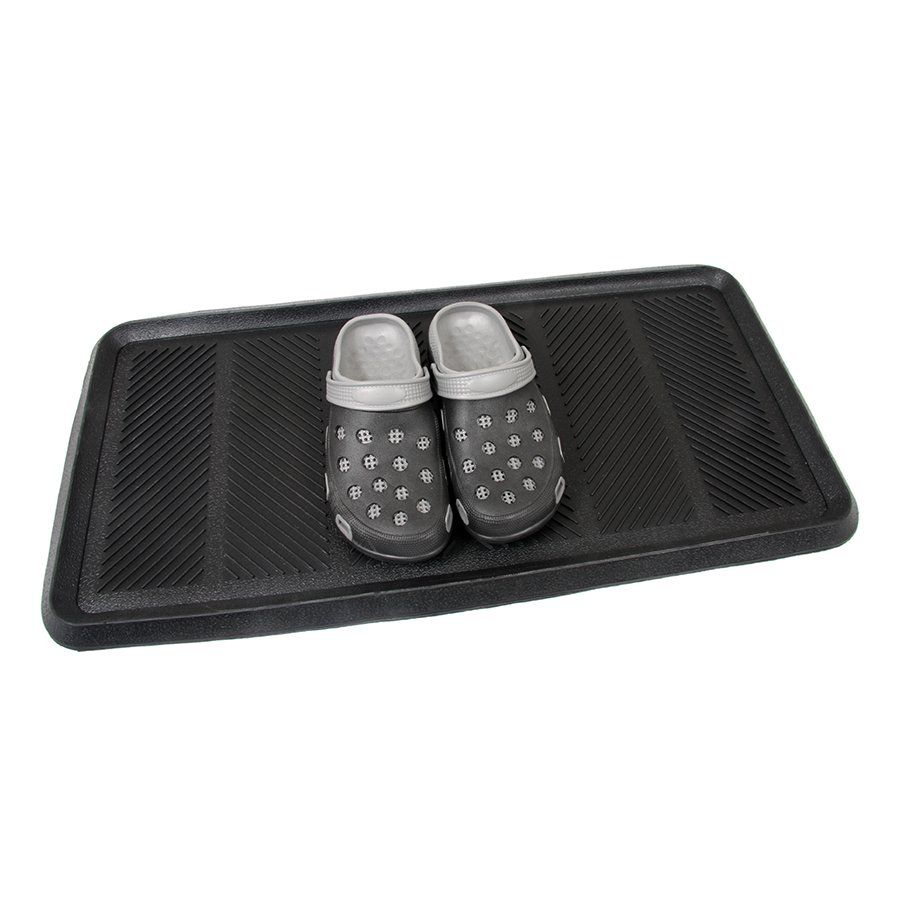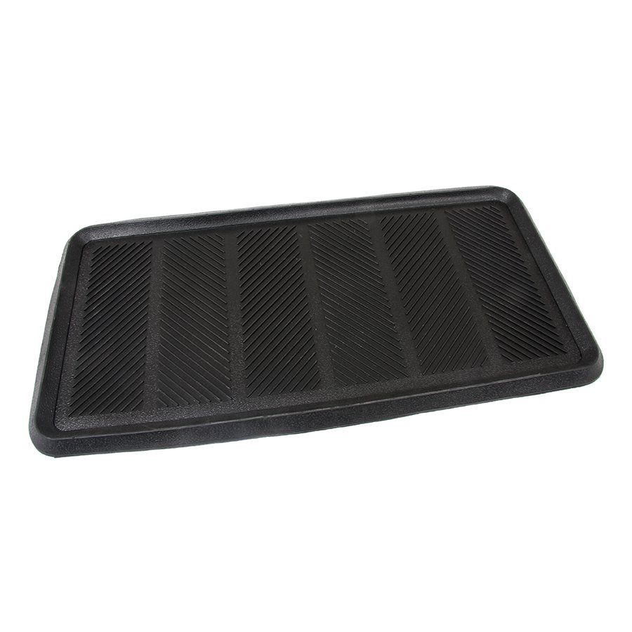Gumový odkapávač na boty FLOMA Lines je praktická a odolná gumová podložka, která slouží k zachytávání vody, sněhu a nečistot z obuvi. Díky zvýšenému okraji zabraňuje úniku vody a chrání podlahy v domácnostech, kancelářích, šatnách i zavazadlových prostorech aut. Design s jemnými liniemi dodává produktu elegantní vzhled a univerzální využití v interiérech i provozech. Kapacita tří párů bot zajišťuje dostatek prostoru i pro vícečlenné domácnosti.