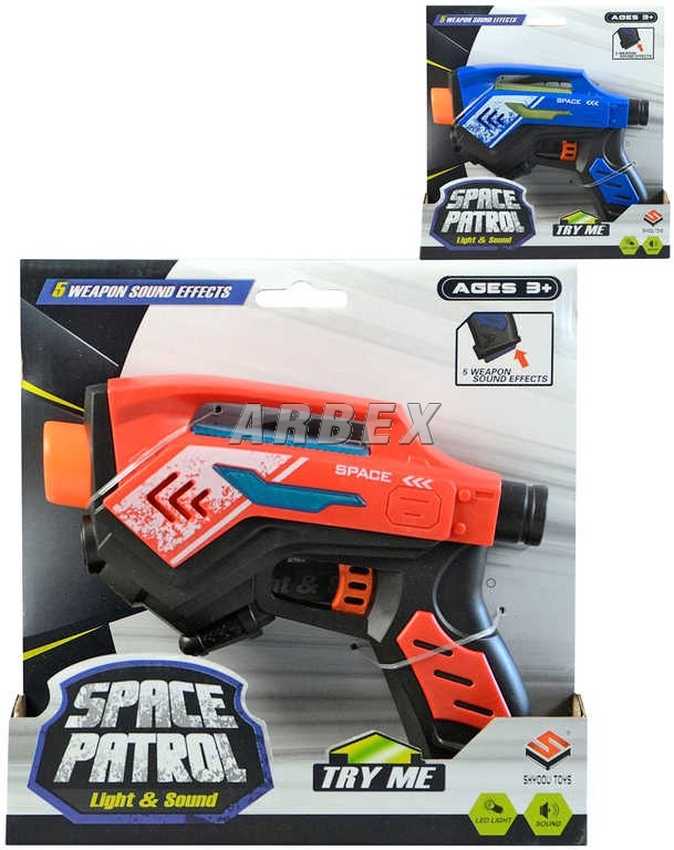 Popis Pistole vesmírná na baterie 17cm LED Světlo Zvuk různé barvy plast