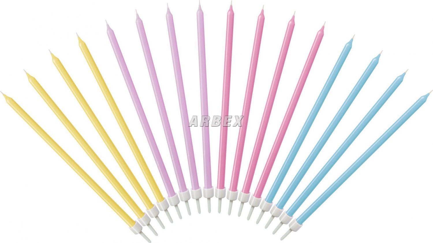 Svíčky s 16 držáky , výška: 14 cm, 16 kusů na blistru.Krásné trendy pastelové barvy.
