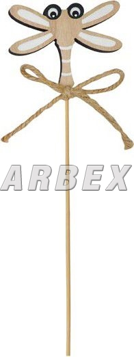Dřevěný zápich vážka. Zápich v designu dřevěné vážky, poslouží jako krásná dekorace na Vaši zahradu nebo na zkrášlení interiéru. Velikost: 25 cm Uvedená cena je za 1 ks.