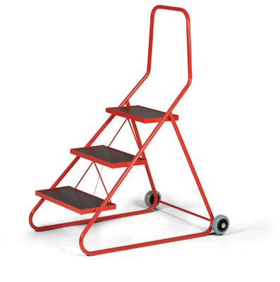 Pojízdné schůdky - 3 schody, vhodné do skladů, prodejen, archivačních místností a dalších prostor, kde potřebujete lehce manipulovat se schůdky a zároveň potřebujete mít přístup do horních polic a prostor.