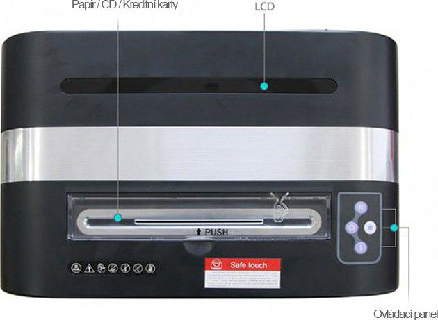 Kvalitní skartovací stroj ergonomického designu, vhodný pro skartaci dokumentů o šířce 230 mm. Skartovač je vybaven bezpečnostní funkcí Safe Touch, která zastaví stroj při dotyku vstupní štěrbiny rukou. Snadné ovládání je zajištěno dotykovým panelem. Stroj je standardně vybaven automatickým systémem start/stop, zpětným chodem, tepelnou pojistkou motoru proti přehřátí, signalizací přeplněného koše a kolečky pro snadnou manipulaci. Příležitostně lze skartovat sešívací a kancelářské sponky. Samostatný vstup na kreditní karty nebo CD. Tichý chod stroje-55 dB. Lehce vyprázdnitelná odpadní nádoba o objemu 35 l.