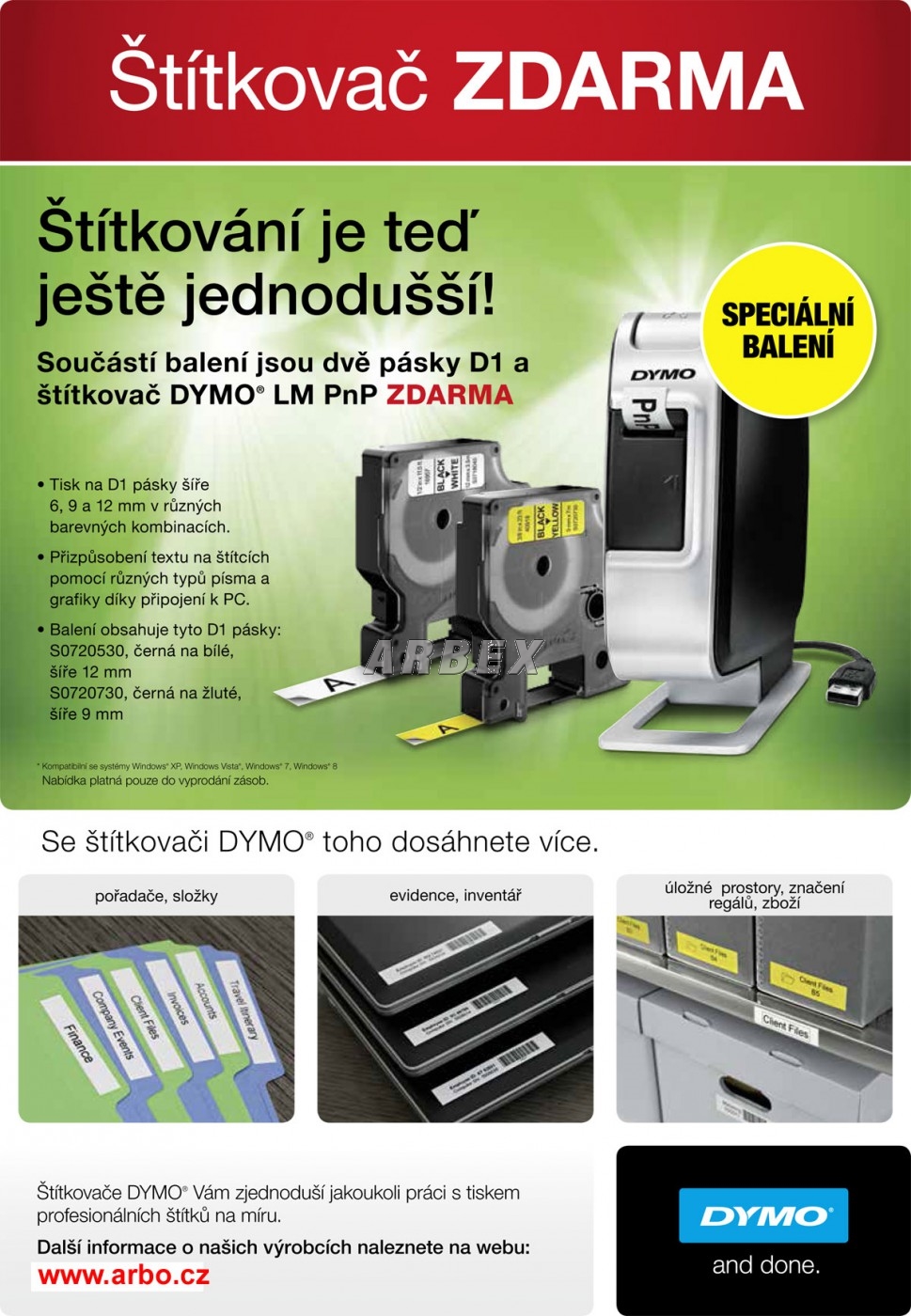 Štítkovač DYMO® LabelManager™ PnP představuje řešení pro nejrůznější situace. Díky možnosti připojení pomocí portu USB lze štítkovat přímo z počítače PC nebo Mac. Napájecí kabely a baterie již nebudete potřebovat. Integrovaný software se zobrazí přímo na obrazovce počítače a je připraven k okamžitému použití. Díky tomu lze použít grafiku v počítači a veškeré styly a velikosti písem, které jsou k dispozici v systému Windows/Mac. Ještě nikdy nebylo tak snadné provádět úpravy textu a rozvržení štítků (ohraničení, orientace, okraje...). A díky vysokorychlostnímu tisku a kompatibilitě s nejrůznějšími typy štítků nabízí DYMO® LabelManager™ PnP skutečně profesionální služby!