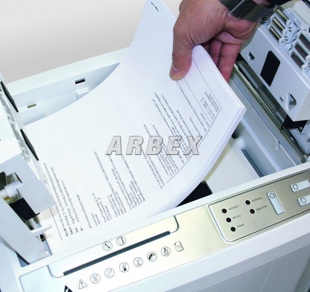 Skartovací stroj s automatickým podavačem. Automaticky skartuje na částice 4×10 mm až 150 volných listů ze zásobníku. Objem koše 30 l. Oddělený vstup pro skartaci CD/DVD nebo plastových karet se samostatným odpadním košem usnadní následné oddělení skartovaného odpadu. Vstup pro ruční vložení a následnou skartaci až 5 listů 80 g papíru najednou.