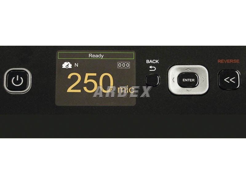 Kvalitní displej LCD zobrazuje ruční nastavení, včetně nabídky s nápovědou, čítače úloh a časovače s odpočítáváním do stavu připravenosti