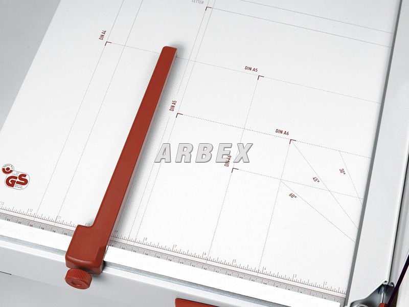 S automatickým přítlakem stohu papíru pro precizní, komfortní řezání, s funkcí EASY LIFT – páka k nadzvednutí přítlaku pro pohodlné odebrání řazaného materiálu.
