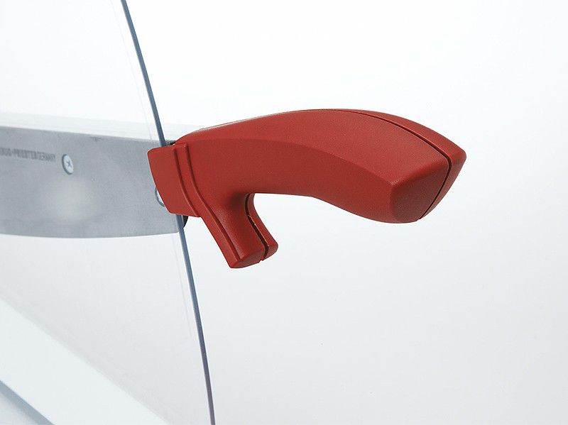Transparentní kryt nože s integrovaným vyznačením místa řezu.