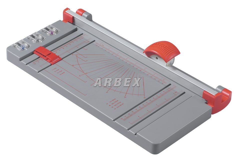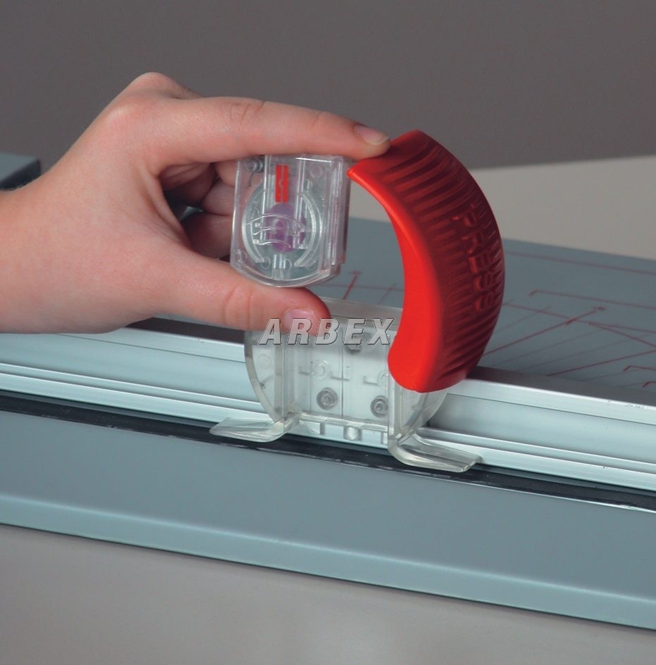 Řezací čepel je zcela skrytá ve výměnné kazetě, čepel se vysune až po přítlaku na řezací hlavu se vsazenou kazetou